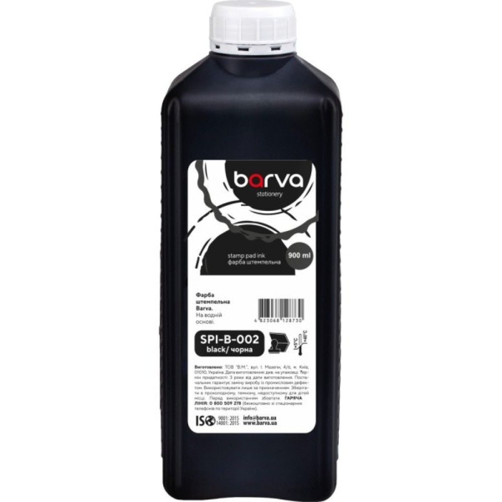 Штемпельна фарба від українського виробника « Barva » призначена для заправки штампів та печаток ручних та автоматичних, датерів, нумераторів. Штемпельна фарба на водяній основі. Фарба для печаток та штампів випускається в економній ємності 900 мл.