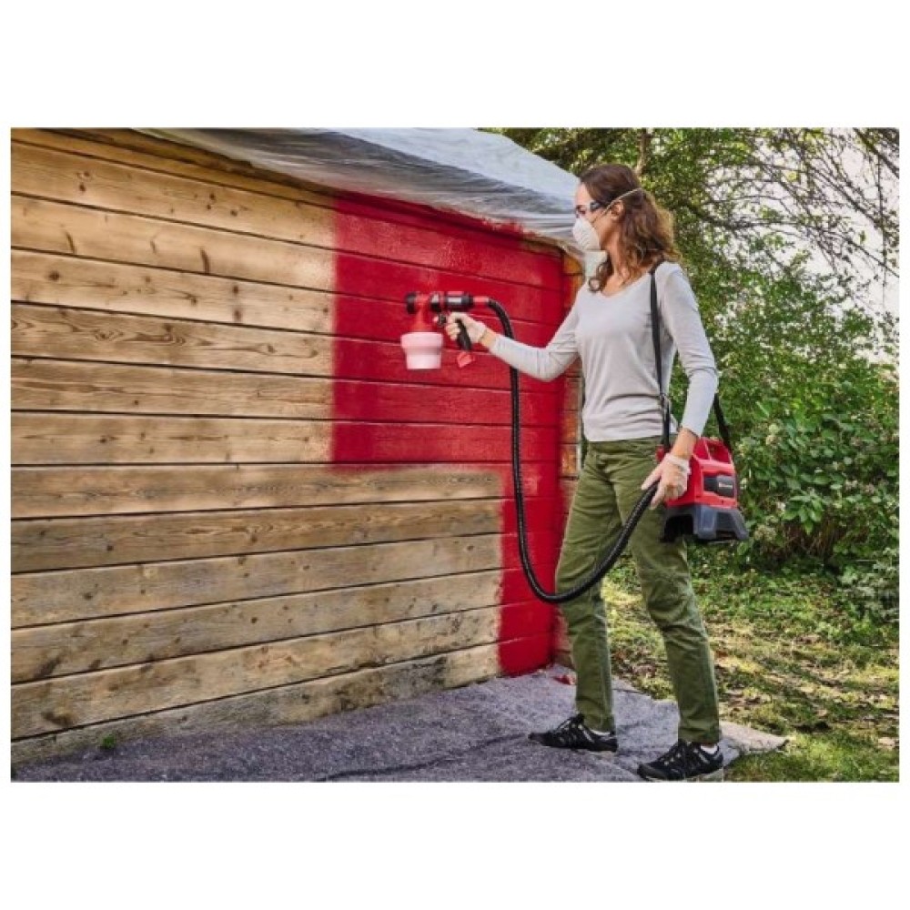 Акумуляторний фарборозпилювач Einhell ідеально підходить для різноманітних робіт з фарбування та нанесення покриттів. Завдяки регульованій продуктивності до 1000 мл/хв. фарби, лаки та інші матеріали з максимальною в'язкістю до 90 DIN/сек. В'язкістю до 90 DIN-сек наносяться рівномірно і в найкоротші терміни.