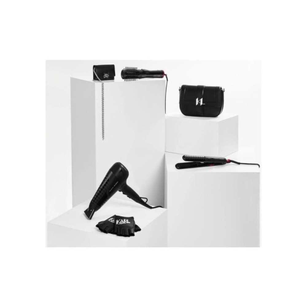 Колекція Rowenta x KARL LAGERFELD — це символ вишуканості та витонченості. Всі вироби цієї лінійки, зокрема фен Rowenta CV581LF0, виконані у преміальному дизайні чорного кольору з характерним візерунком KARL LAGERFELD. Цей продукт призначено для тих, хто прагне завжди виглядати бездоганно, зберігаючи при цьому уникальність та індивідуальність кожного образу.