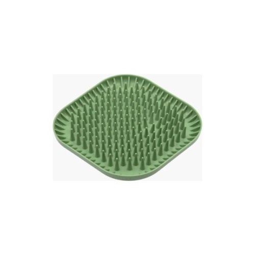 Виріб виготовлено з м’якого пластичного матеріалу, що добре прикріплюється до підлоги, завдяки чому не ковзає. Килимок для злизування ласощів і їжі має заспокійливий та розслабляючий ефект для домашніх тварин.