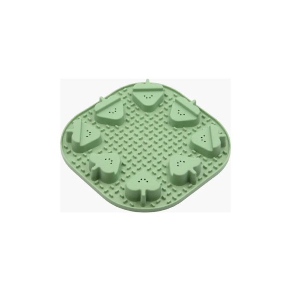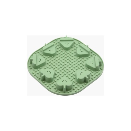 Виріб виготовлено з м’якого пластичного матеріалу, що добре прикріплюється до підлоги, завдяки чому не ковзає. Килимок для злизування ласощів і їжі має заспокійливий та розслабляючий ефект для домашніх тварин. А нюхові накладки відволікатимуть пухнастого.