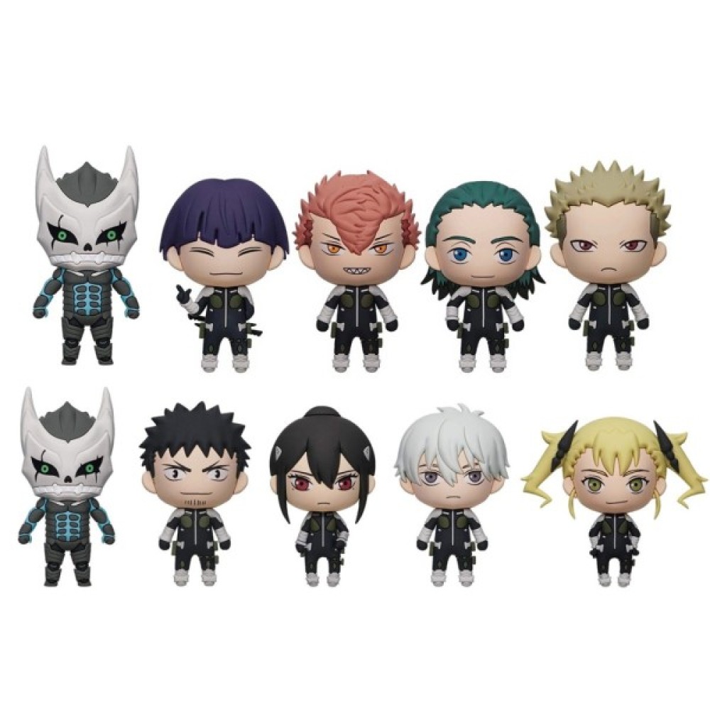- В асортименті 11 головних героїв з яких 2 рідкісних: Кайджю №8, Кафка Хібіно, Міна Ашіро, Рено Ічікава, Кікору Шіномія, Хошіна Сошіро, Іхару Фурухаші, Ідзумо Харуйчі, Аой Каґураґі, Кафка (як прибирач монстрів) (рідкісний) та тематична фігурка-постер (рідкісна).