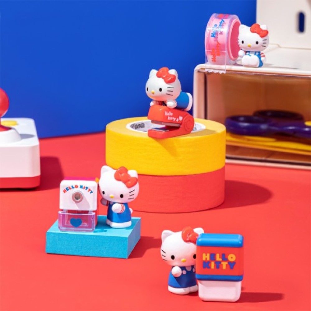 Відкрийте милий світ Hello Kitty у форматі мініатюрної канцелярії! У серії офіційно ліцензованих фігурок Sanrio Hello Kitty позує поруч з різними канцелярськими предметами — ручкою, ластиком, точилкою для олівців та іншими аксесуарами, які нагадують шкільні будні з ноткою чарівності.