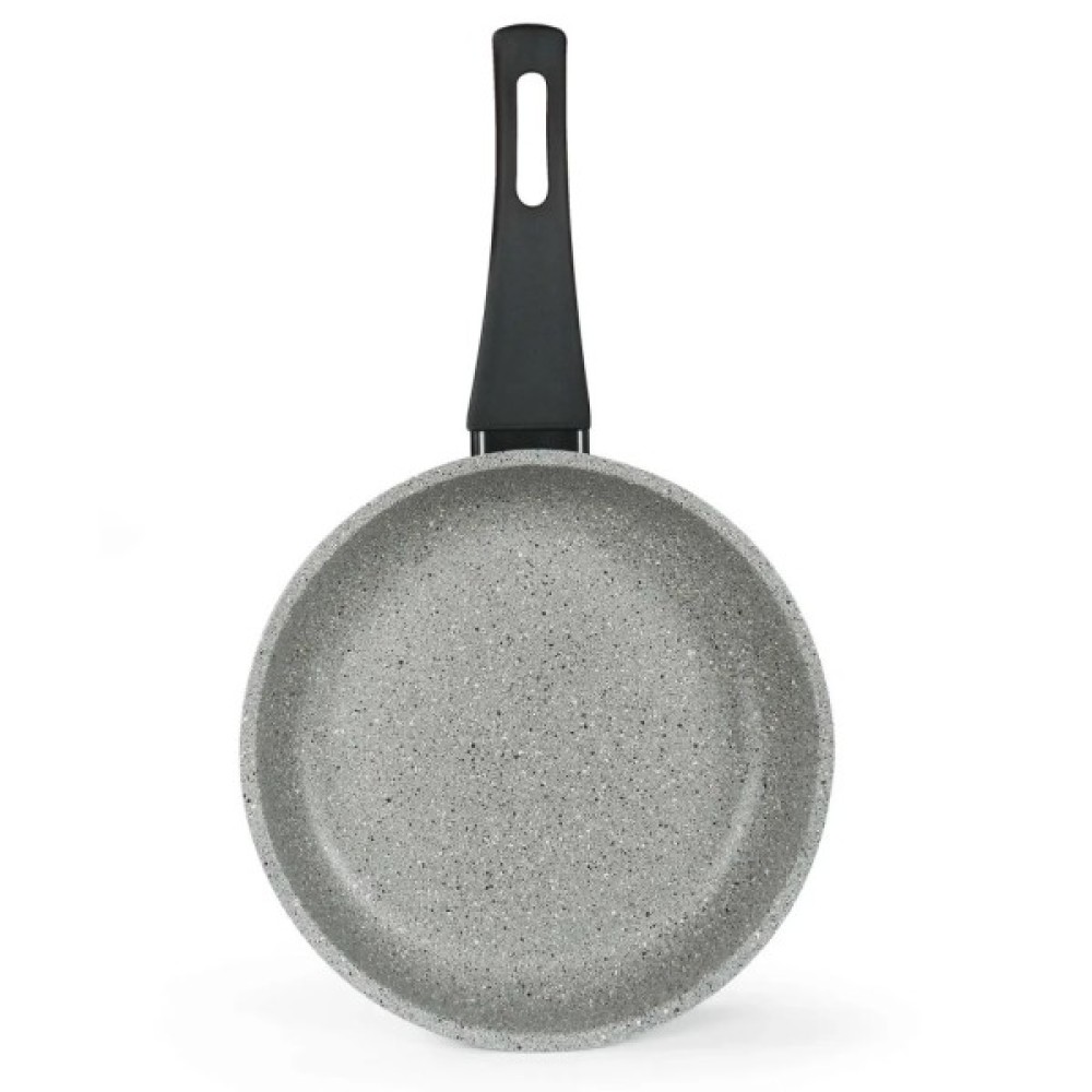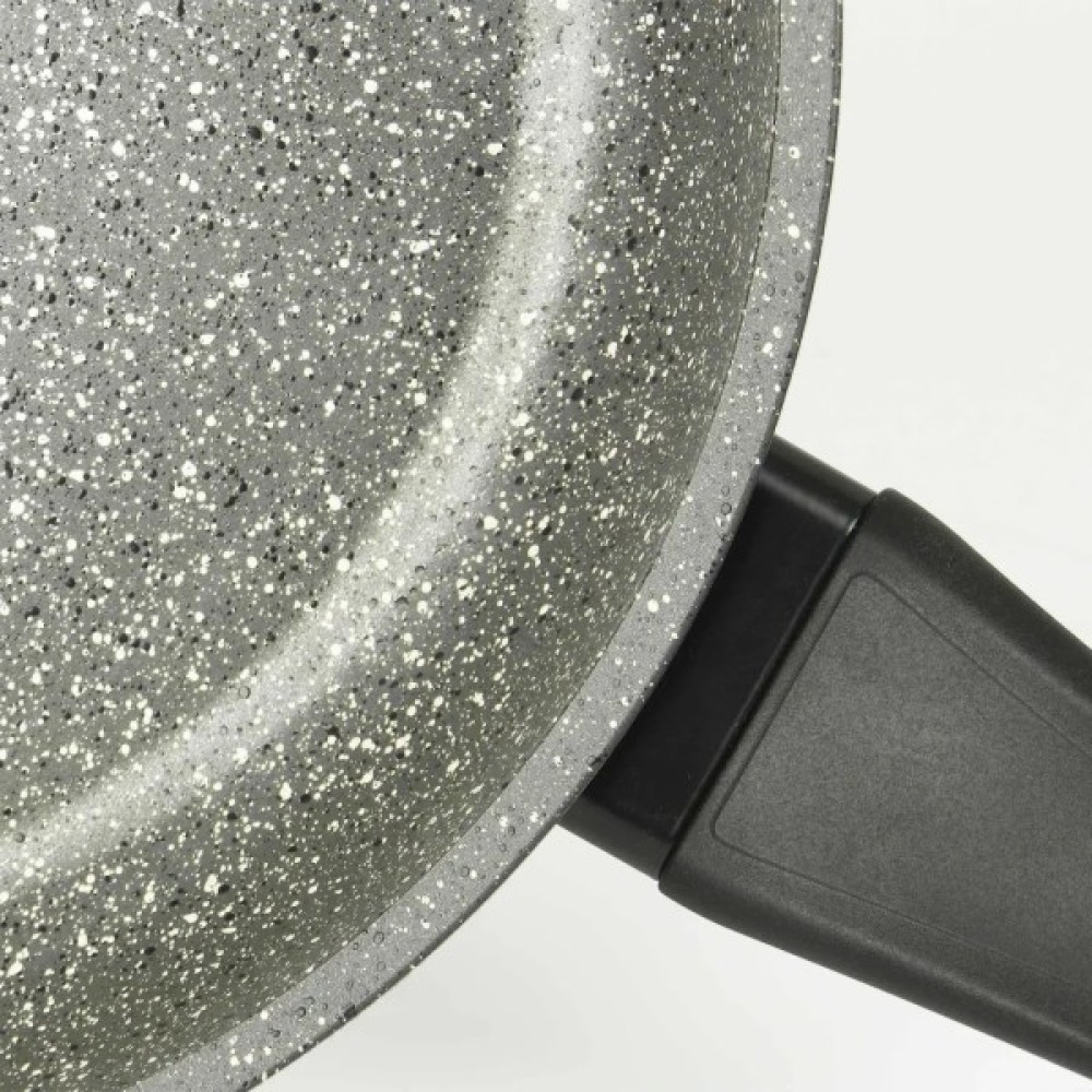 Феромагнітне дно робить сковороду придатною для будь-якої нагрівальної поверхні, включаючи індукційні плити. Товстий алюмінієвий ободок по периметру сковорідки робить її більш витривалою до ударів, сприяє утриманню первинної форми навіть під час тривалого використання, та дозволяє кришкам щільніше прилягати до сковороди. Широка бакелітова ручка зручна і комфортна для утримання в долоні. Зовнішнє антипригарне покриття робить догляд за сковородою легким і швидким.