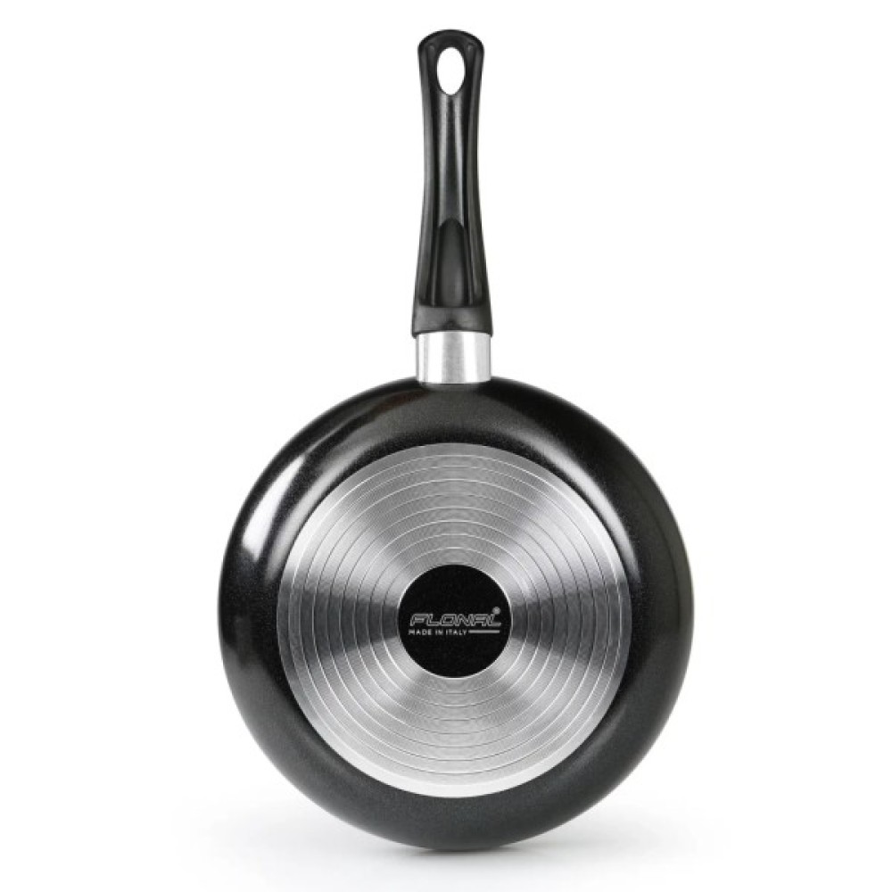Невеличка сковорідка Flonal Milano чудово підходить для швидкого розігрівання невеликої кількості їжі, а також для приготування яєчні, омлету, пасти під соусом, запіканки для одної-двох персон. Сковорідка на стільки ж легка, на скільки і сам процес приготування на ній. Поліроване дно з концентричними канавками роблять нижню поверхню менш ковзкою, відповідно процес приготування - більш безпечним. Легка ергономічна ручка з бакеліту зручна для утримання в долоні.