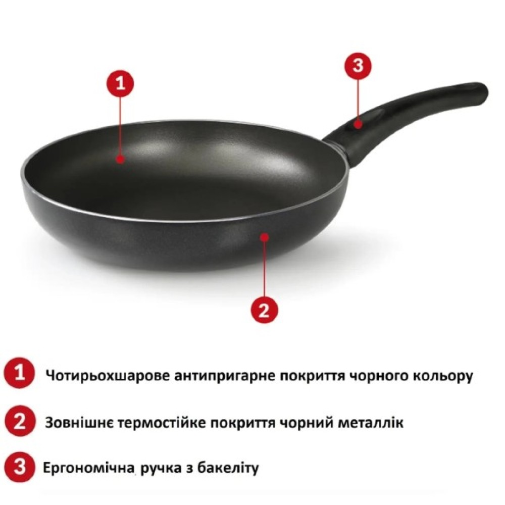 Зовнішнє термостійке покриття кольору чорний металлік має властивості, що зменшують стійке налипання жиру та бруду. Це полегшує догляд за посудом та дозволяє використовувати більш економні режими посудомийних машин.