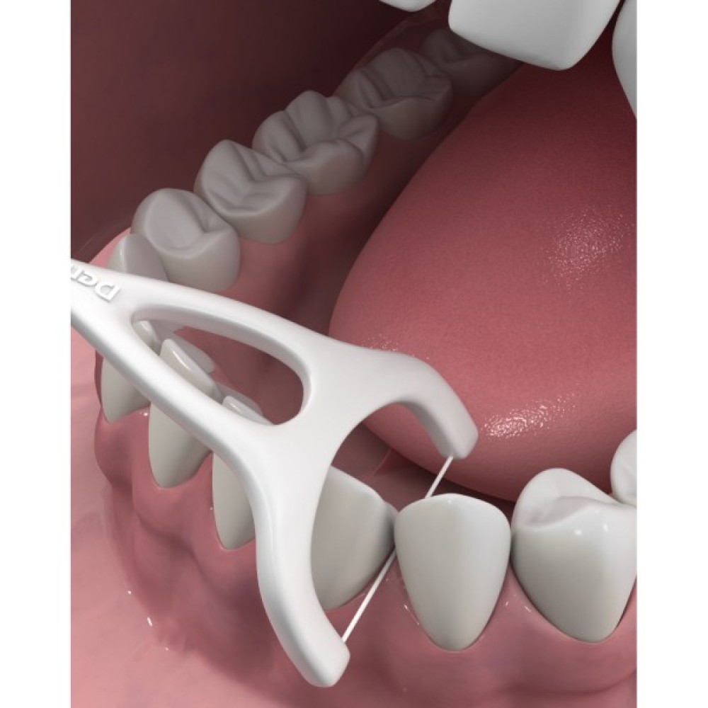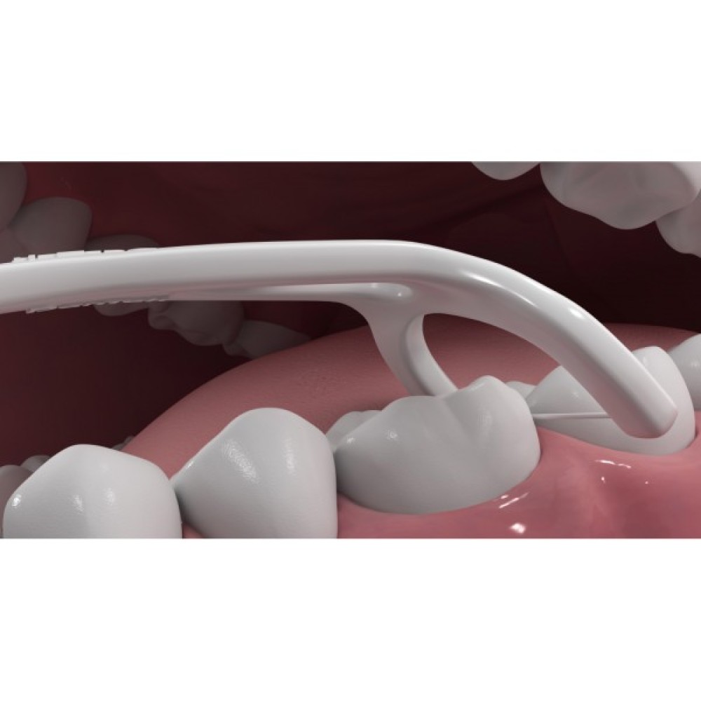 - Зубочистка Y-подібної форми з розташованою під кутом головкою з флосом легко дістає до задніх зубів