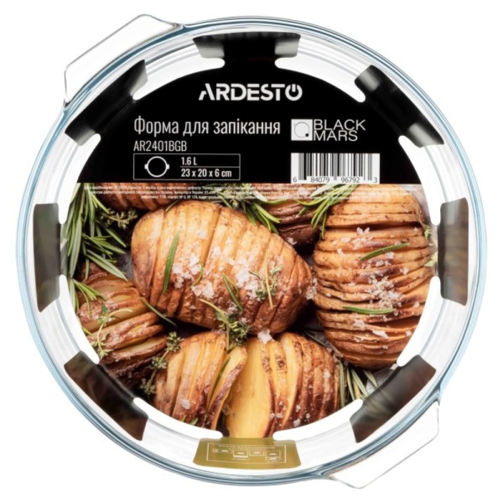Форма для запікання ARDESTO серії Black Mars поєднує практичність і універсальність. Її виготовлено з екологічного міцного боросилікатного скла, яке може витримувати температуру від -40 до +400 °C. Об’єм становить 1,5 л. Завдяки прозорості скла легко контролювати процес приготування без необхідності постійно відчиняти дверцята печі. Кругла форма розміром 23 × 20,8 × 7 см згодиться для приготування запіканок, різноманітних видів м’яса, риби, пирогів тощо. Виріб можна мити в посудомийній машині.