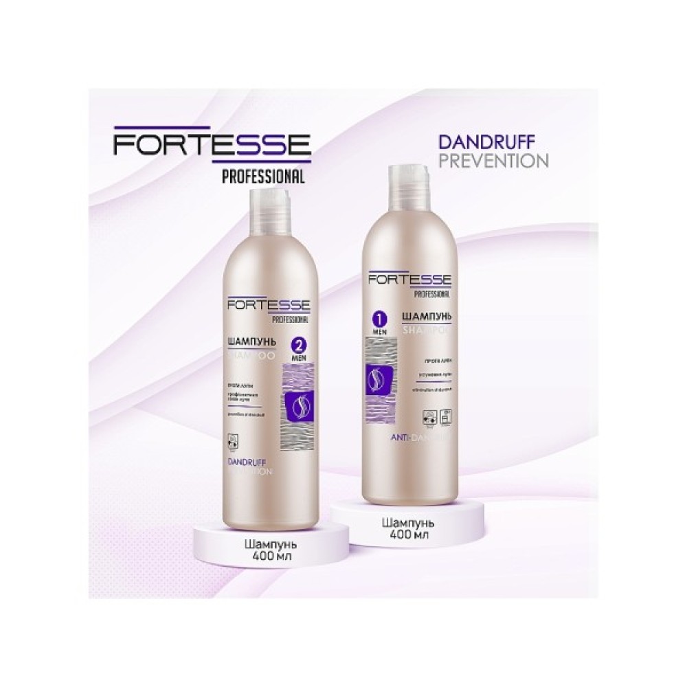 Шампунь Fortesse Professional Dandruff Prevention об'ємом 400 мл — це ваш надійний помічник у боротьбі з лупою завдяки інноваційній професійній формулі. Розроблений у співпраці з провідними косметологами, цей засіб забезпечує глибоке очищення волосся всіх типів, ефективно усуваючи забруднення, косметику для укладки і надлишок себуму. Ваша шкіра голови отримує свіжість та здоровий вигляд завдяки ретельному догляду, а волосся сяє здоров'ям.