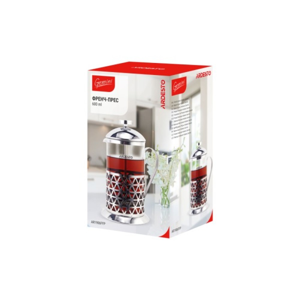 Великий прозорий френч-прес для приготування гарячих і холодних напоїв виготовлено із надійного боросилікатного скла та нержавіючої сталі. Вирізняється широким діапазоном термостійкості: від -20 °C до 230 °C. Можна мити в посудомийній машині.