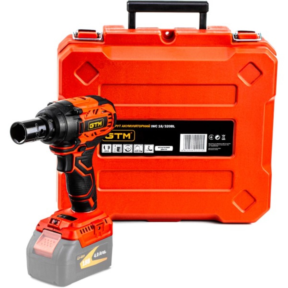 Гайковерт GTM IWC18/320BL, 18В, 320Нм, 1/2", (без АКБ та ЗП) (IWC18/320BL_BARE TOOL)