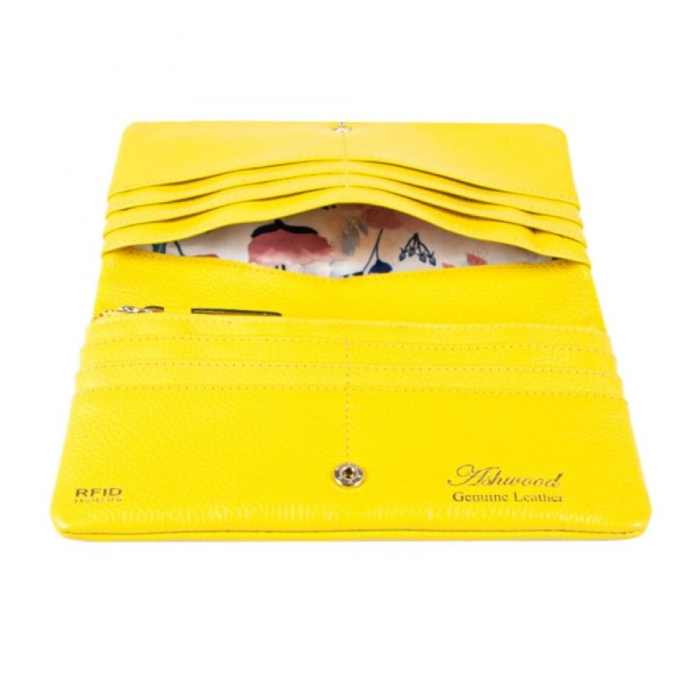 Жіночий гаманець Ashwood J56 виконаний з високоякісної матової телячої шкіри світло-блакитного кольору. Він включає одне відділення для купюр, містке відділення для монет на блискавці і дванадцять слотів для карт. Яскрава підкладка надає вишуканості. Розміри 19х9х2.5 см, представлений у подарунковій упаковці.