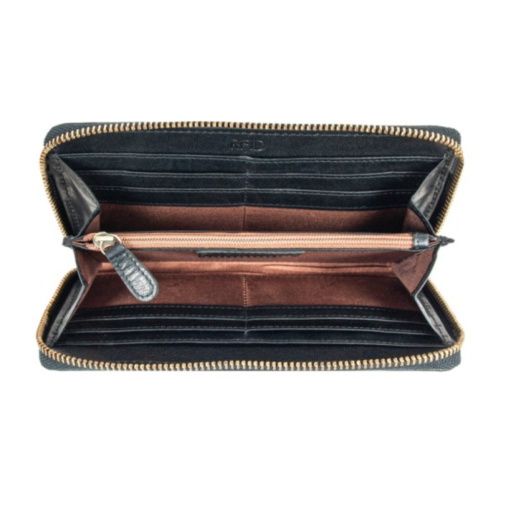 Жіночий гаманець Ashwood T90 виконаний зі 100% натуральної телячої шкіри і є функціональним клатчем із захистом RFID. Він закривається на блискавку та має 8 відділень для карток, два внутрішні відділення для купюр та монетницю на блискавці. Крім того, зовні передбачена кишеня на блискавці для зручності зберігання дрібниць. Розмір гаманця становить 19 х 10 х 2 см, що робить його компактним та зручним у використанні.