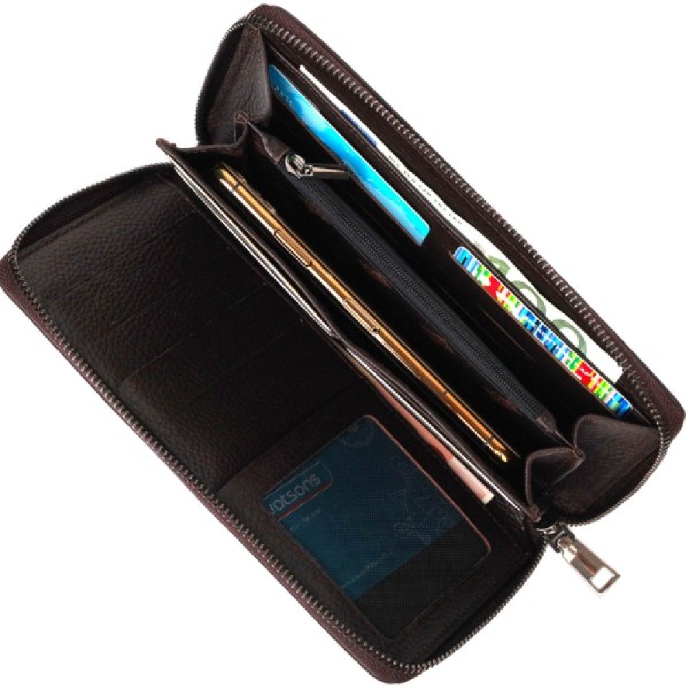 Гаманець закривається на блискавку, всередині можна без проблем розмістити паперові банкноти, банківські картки, дрібні речі та навіть смартфон.