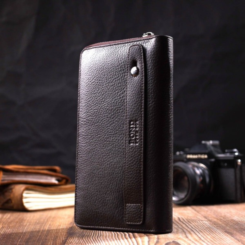 Гаманець Bond Accessories З одним відділенням з натуральної шкіри Коричнева (22032)