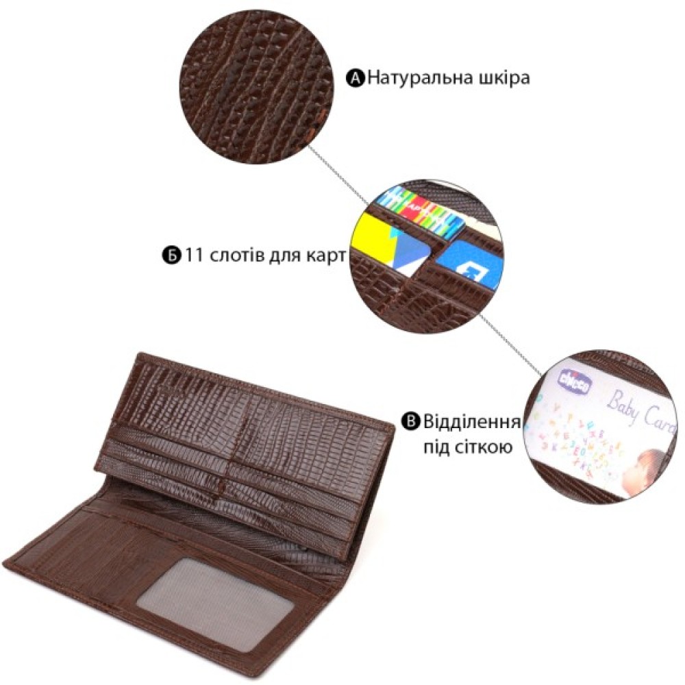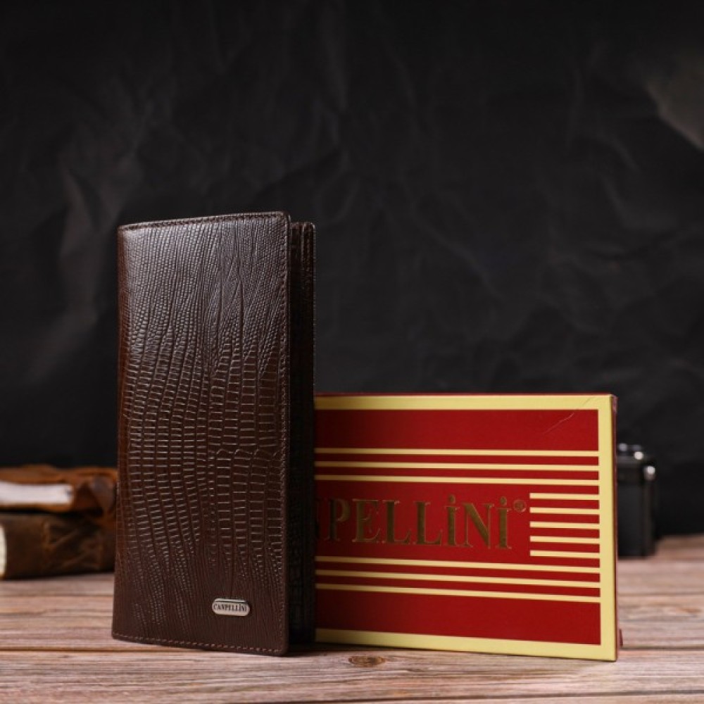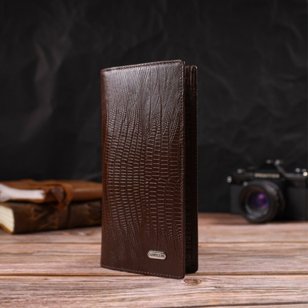 Відмінний чоловічий гаманець із натуральної шкіри з тисненням під рептилію.