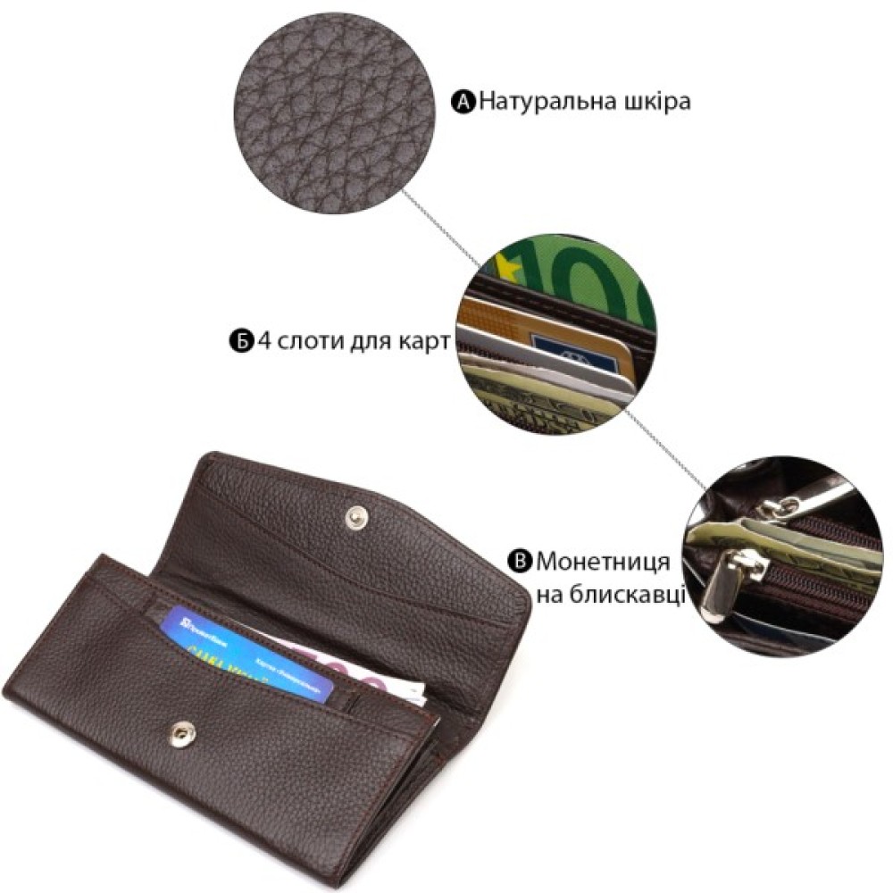 Практичний жіночий гаманець із натуральної зернистої шкіри.