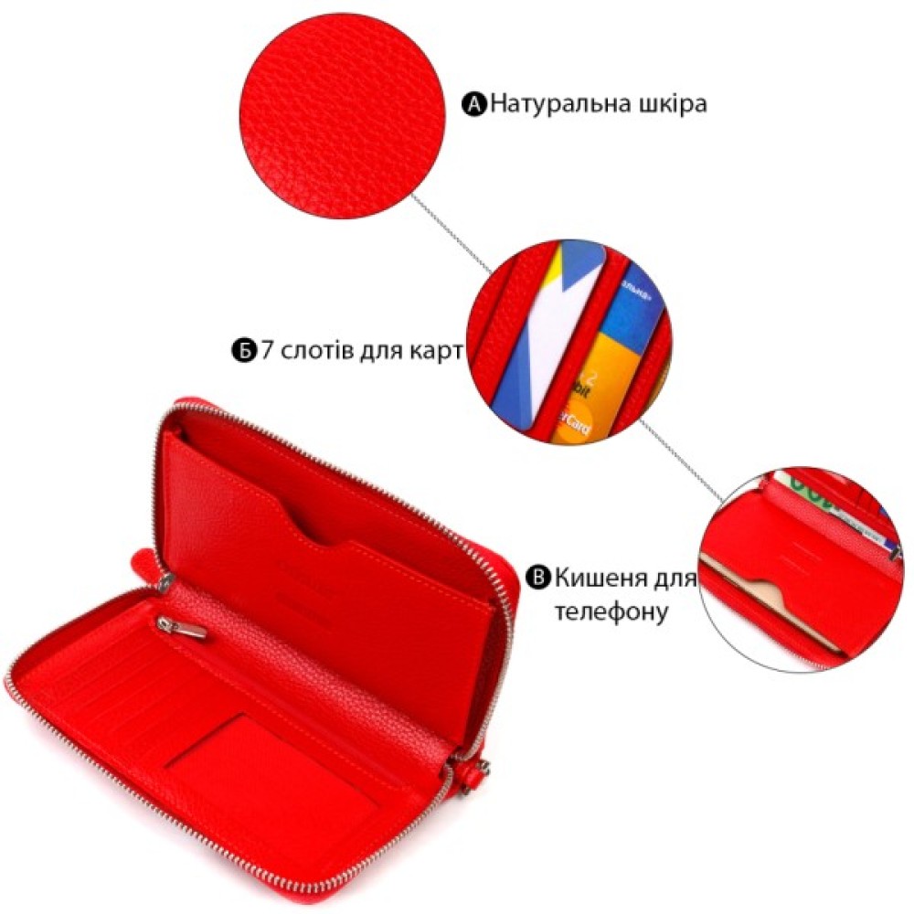 Практичний та зручний жіночий гаманець-клатч із натуральної шкіри.