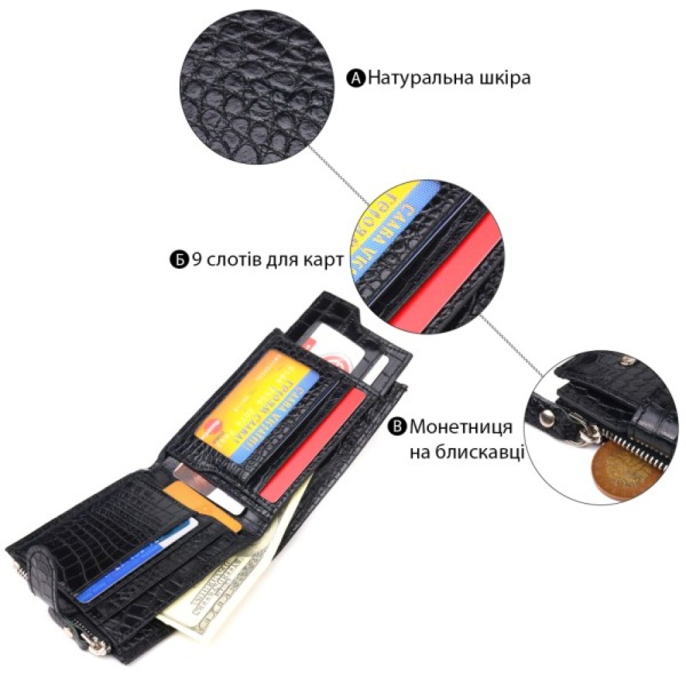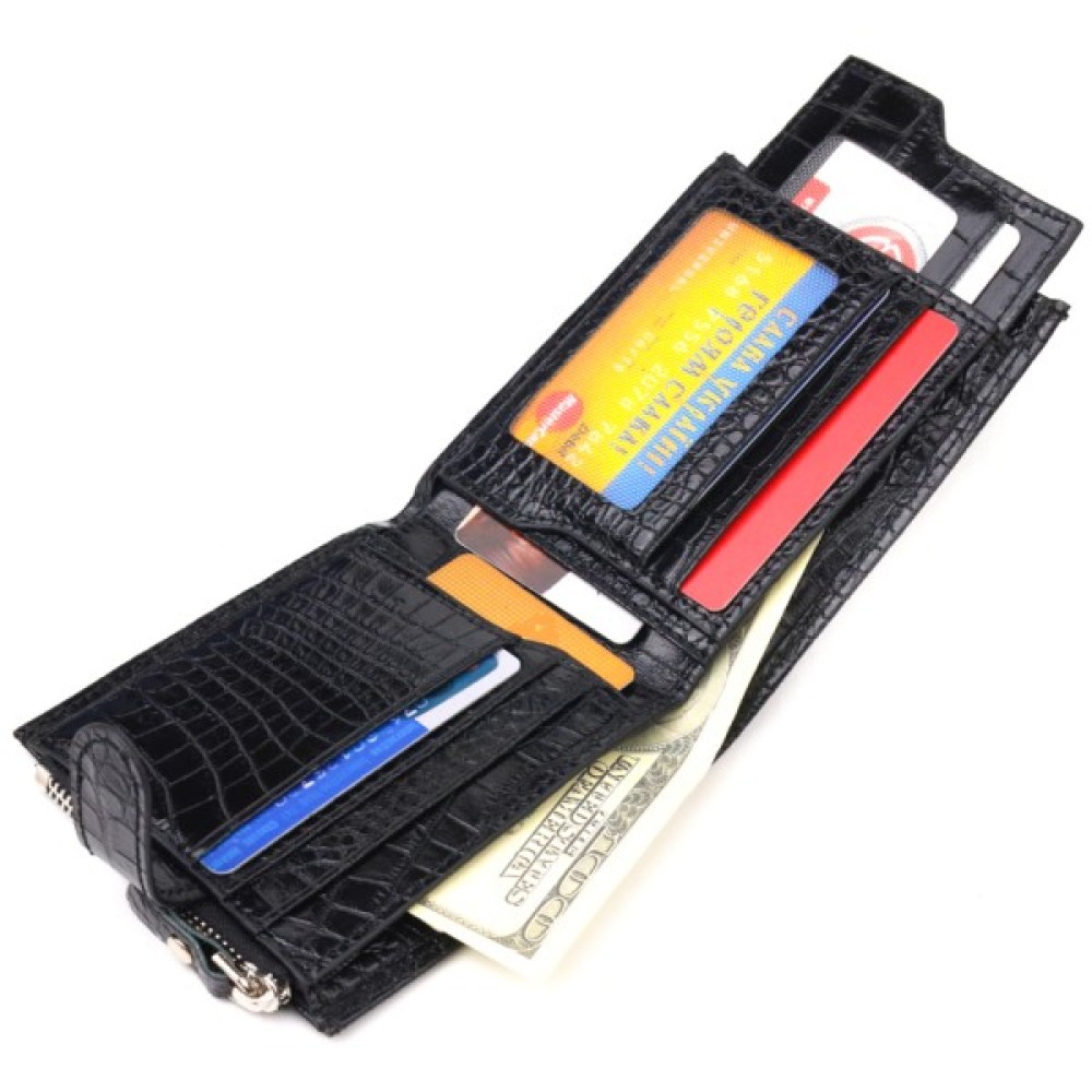 Оригінальний гаманець для чоловіків з натуральної фактурної шкіри з тисненням під крокодила.