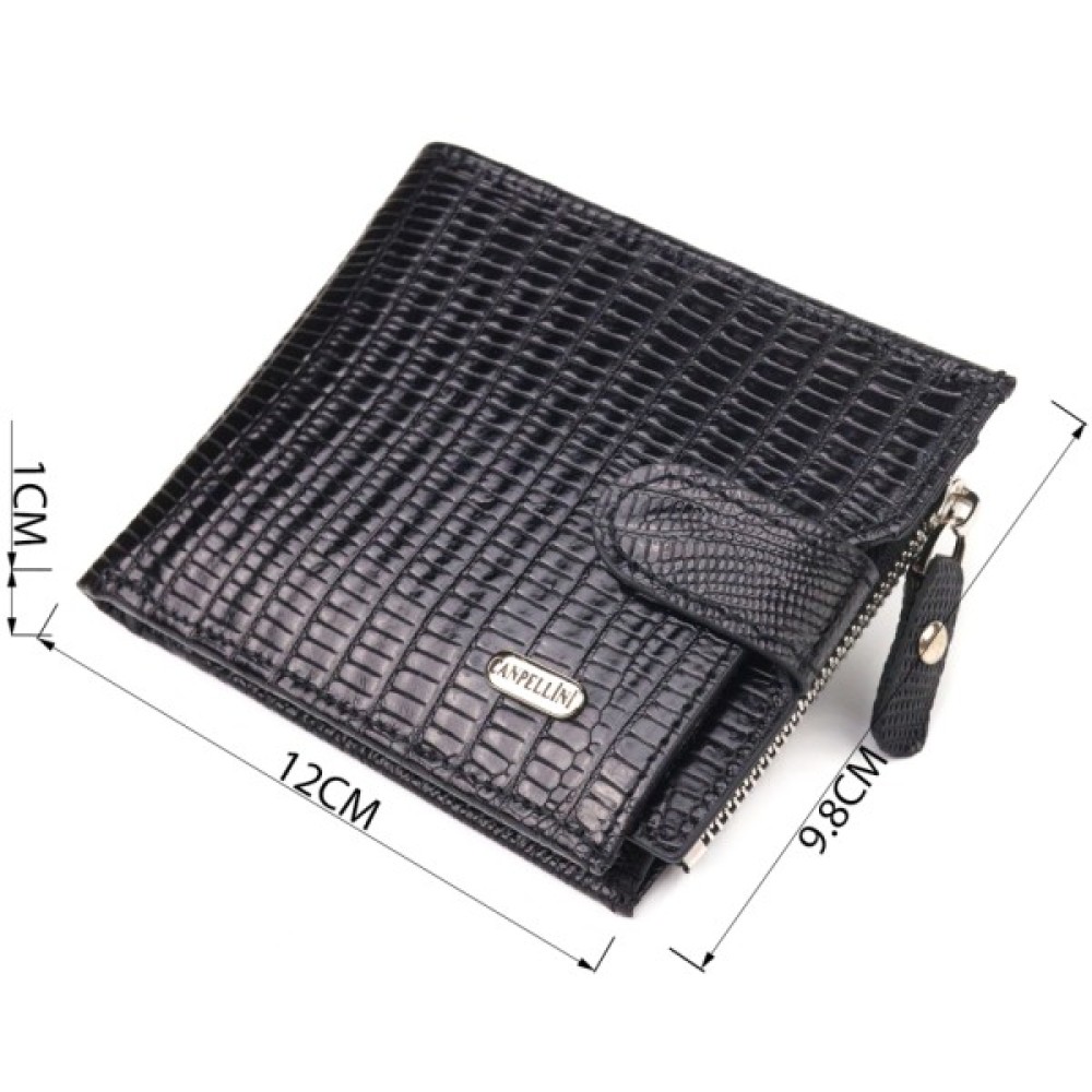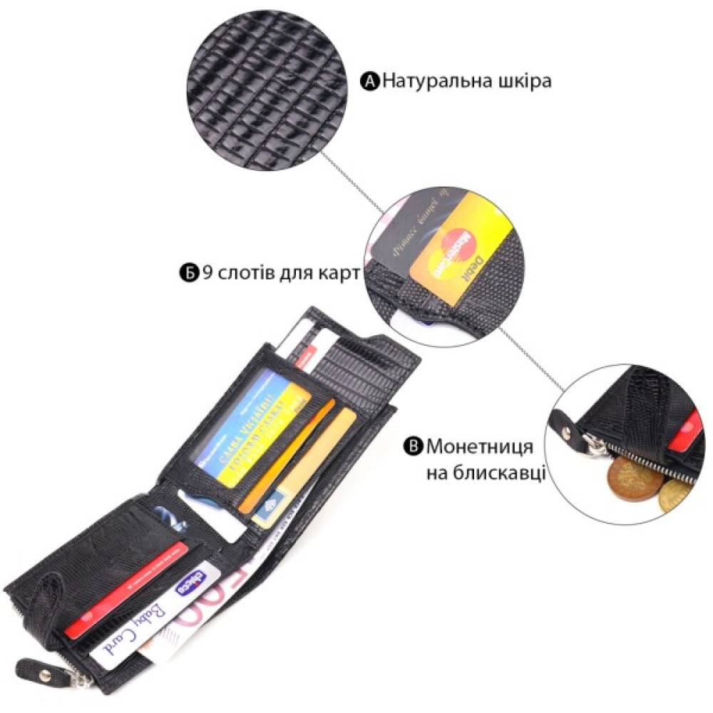 Надійне портмоне для чоловіків, із натуральної фактурної шкіри, у класичному чорному кольорі.