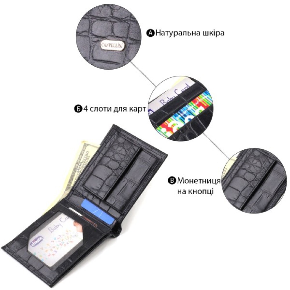 Гаманець, Canpellini, З, натуральної, шкіри, Чорний, 21766