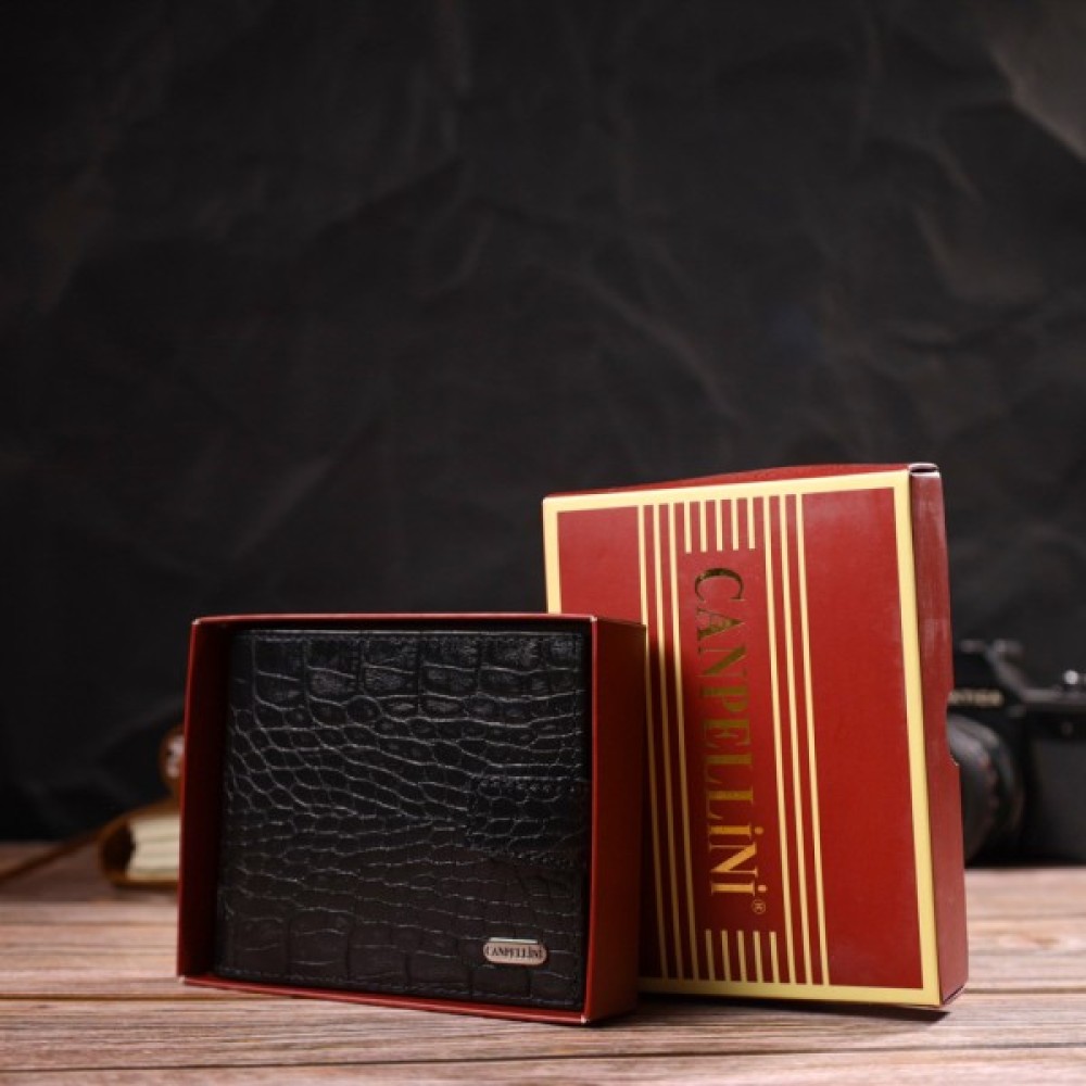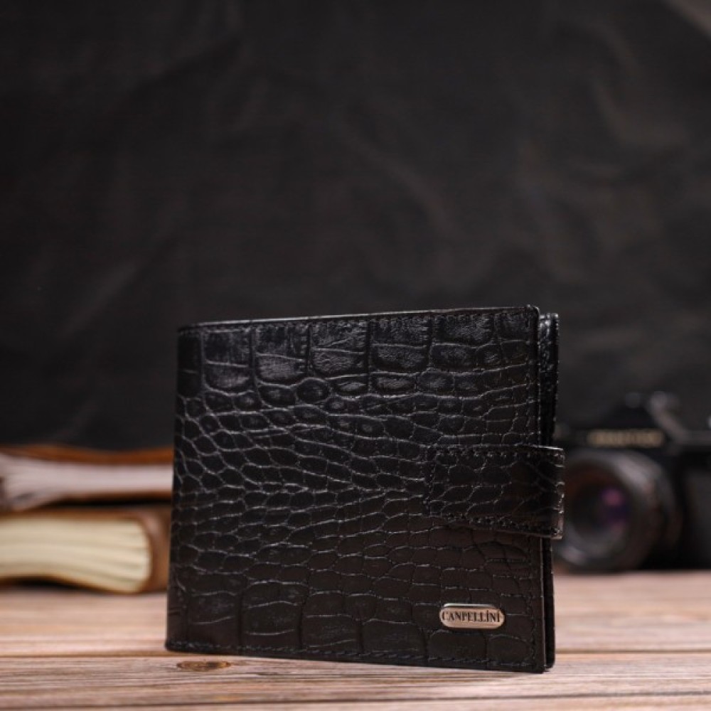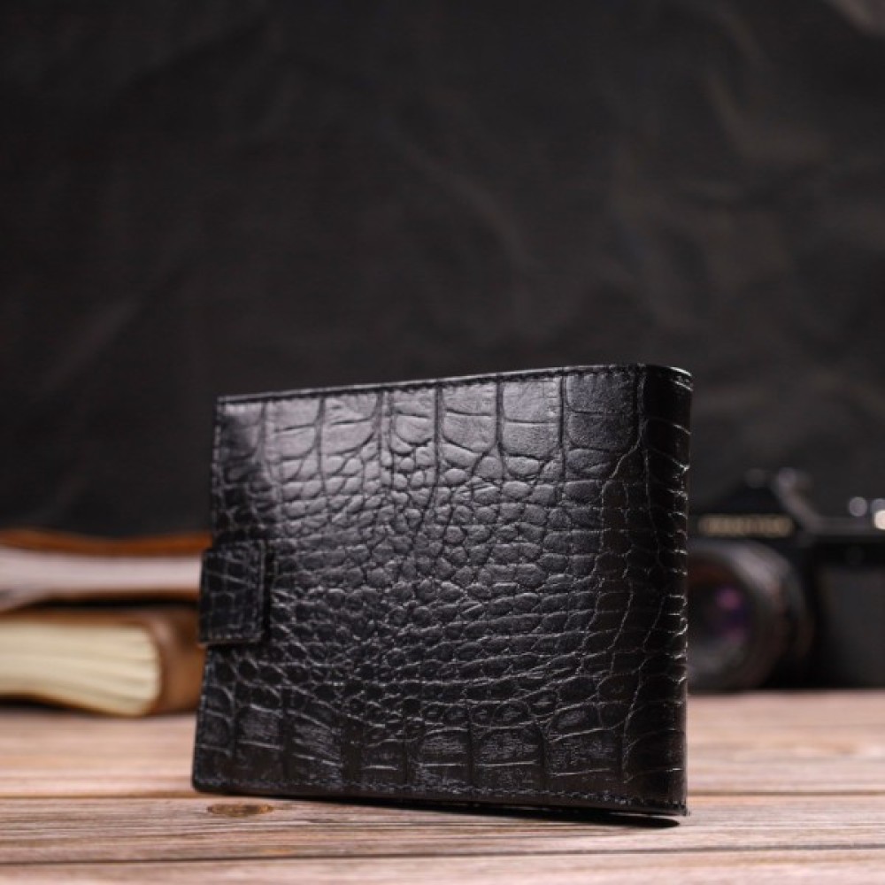 Фактурний чоловічий гаманець середнього розміру з натуральної шкіри з тисненням під крокодила.