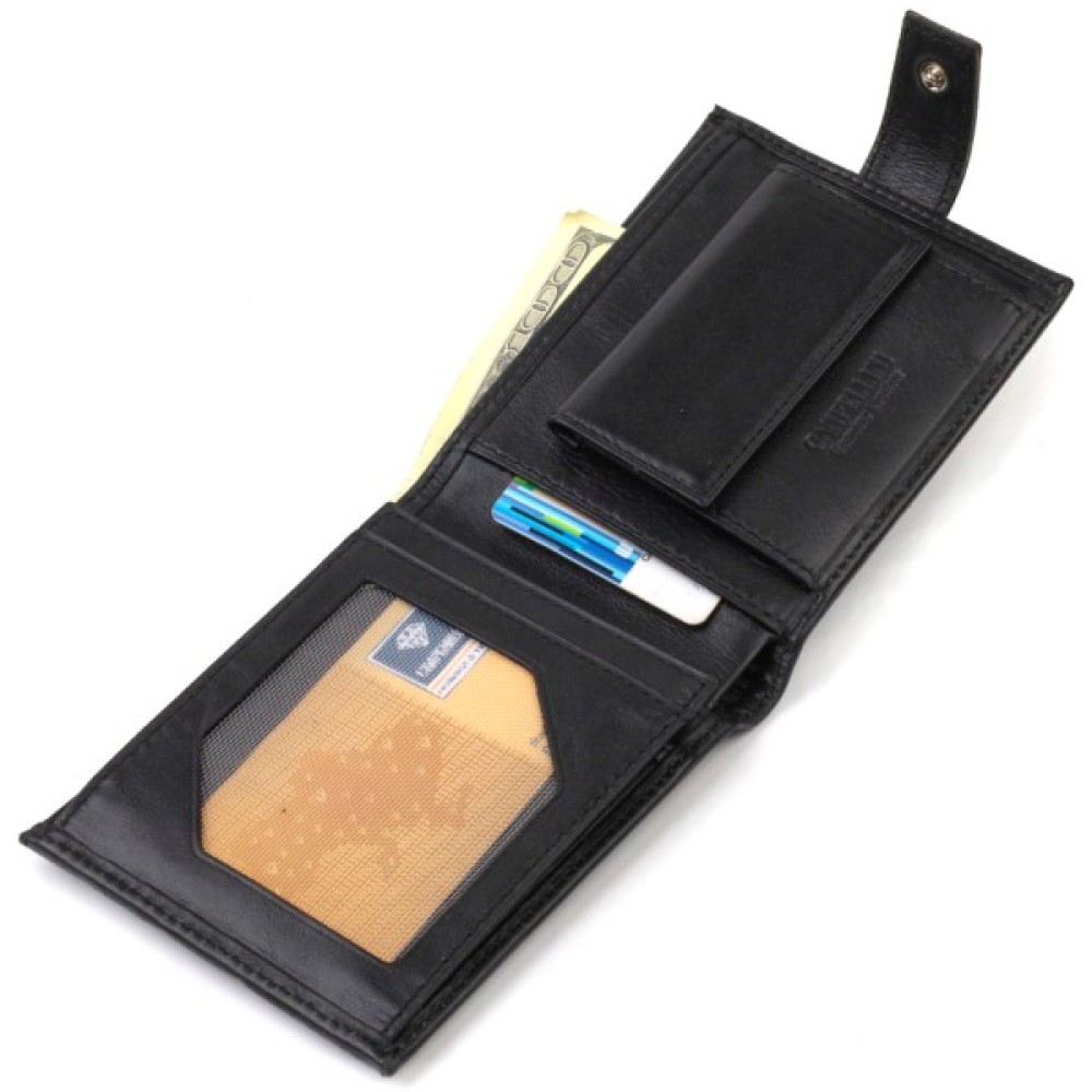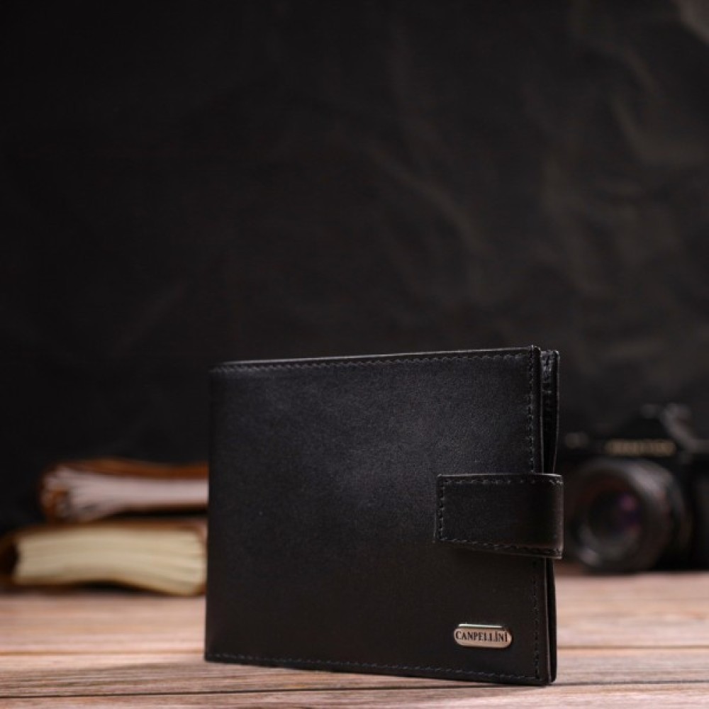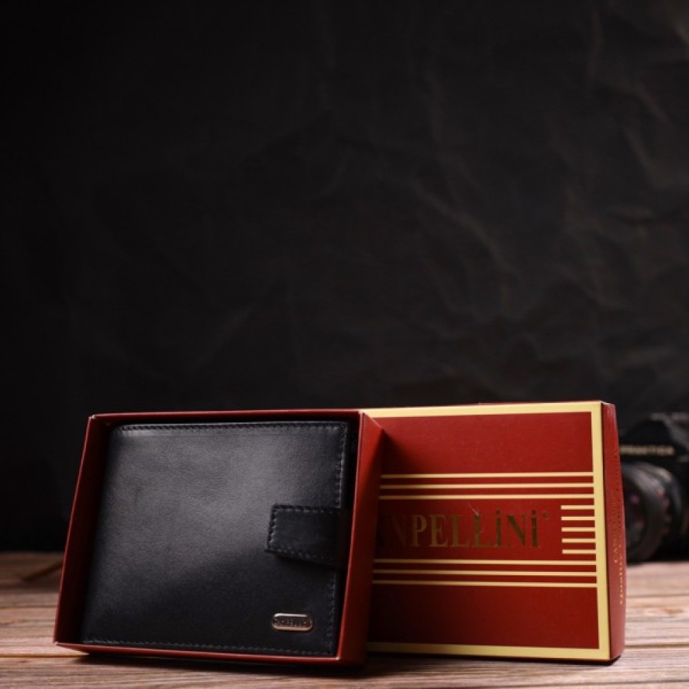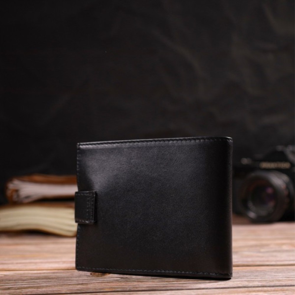 Стильний чоловічий гаманець середнього розміру з натуральної гладкої шкіри.