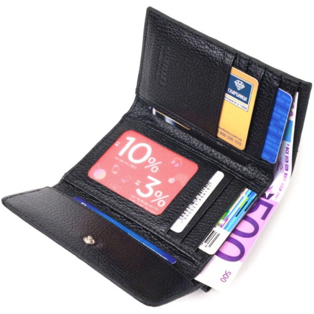 Гаманець Canpellini З натуральної шкіри флотар Чорний (21591)