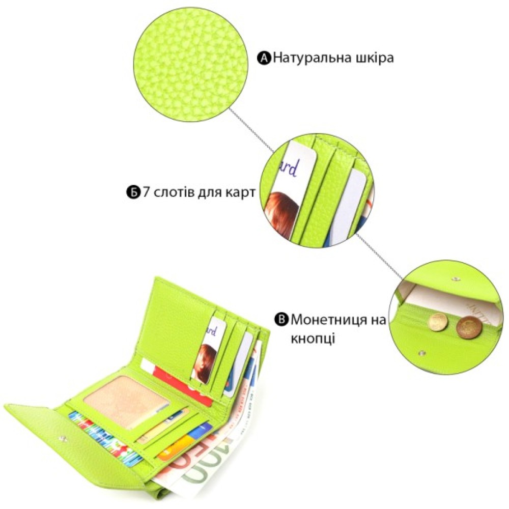 Гаманець, Canpellini, З, натуральної, шкіри, флотар, Салатовий, 21598