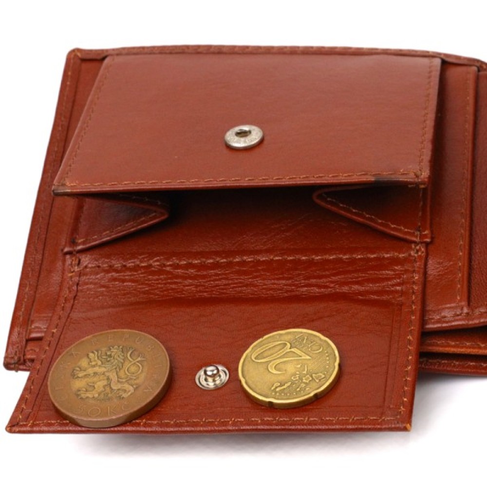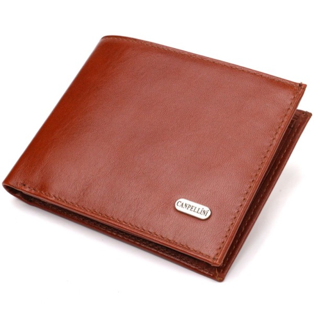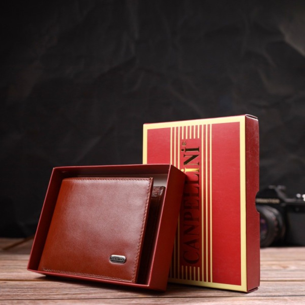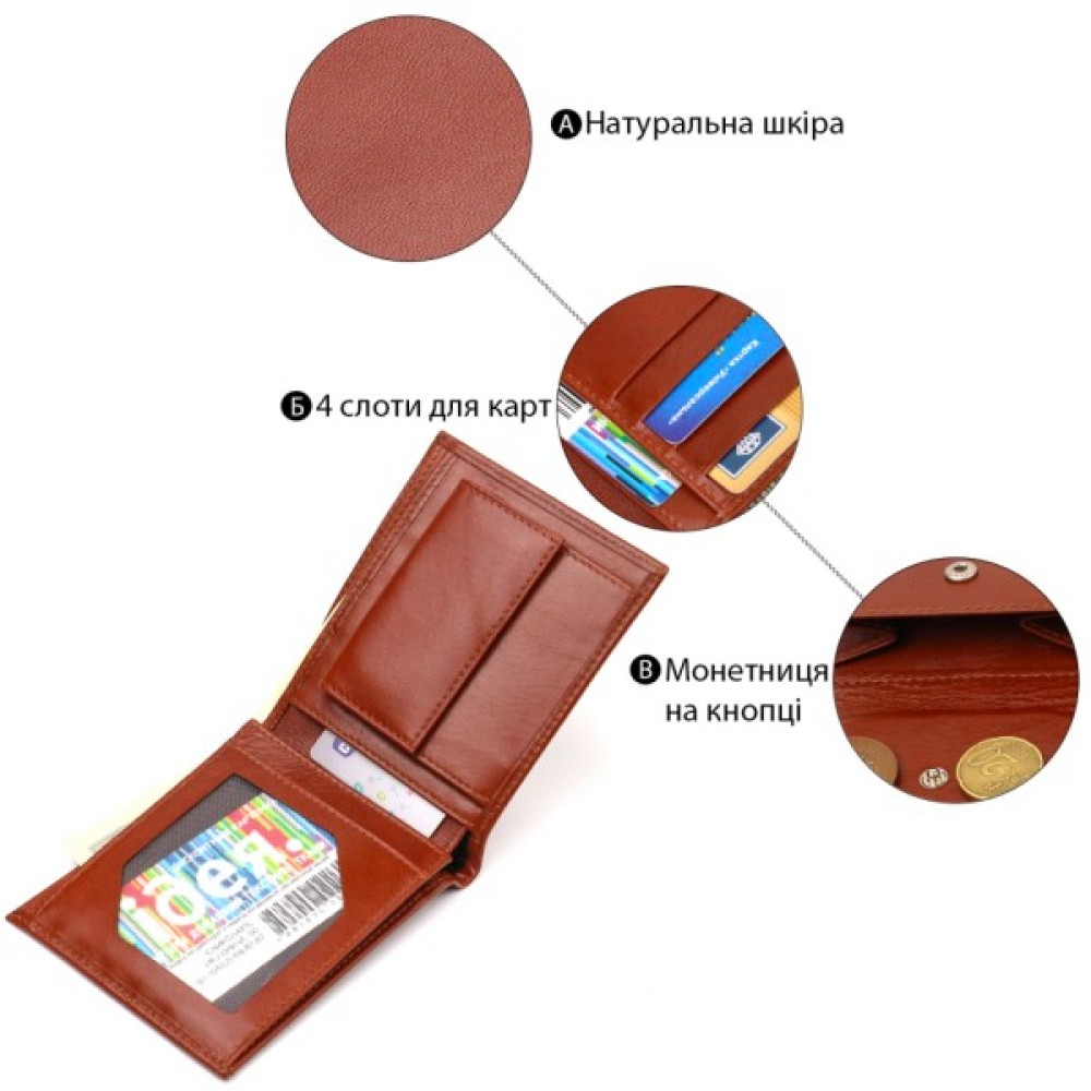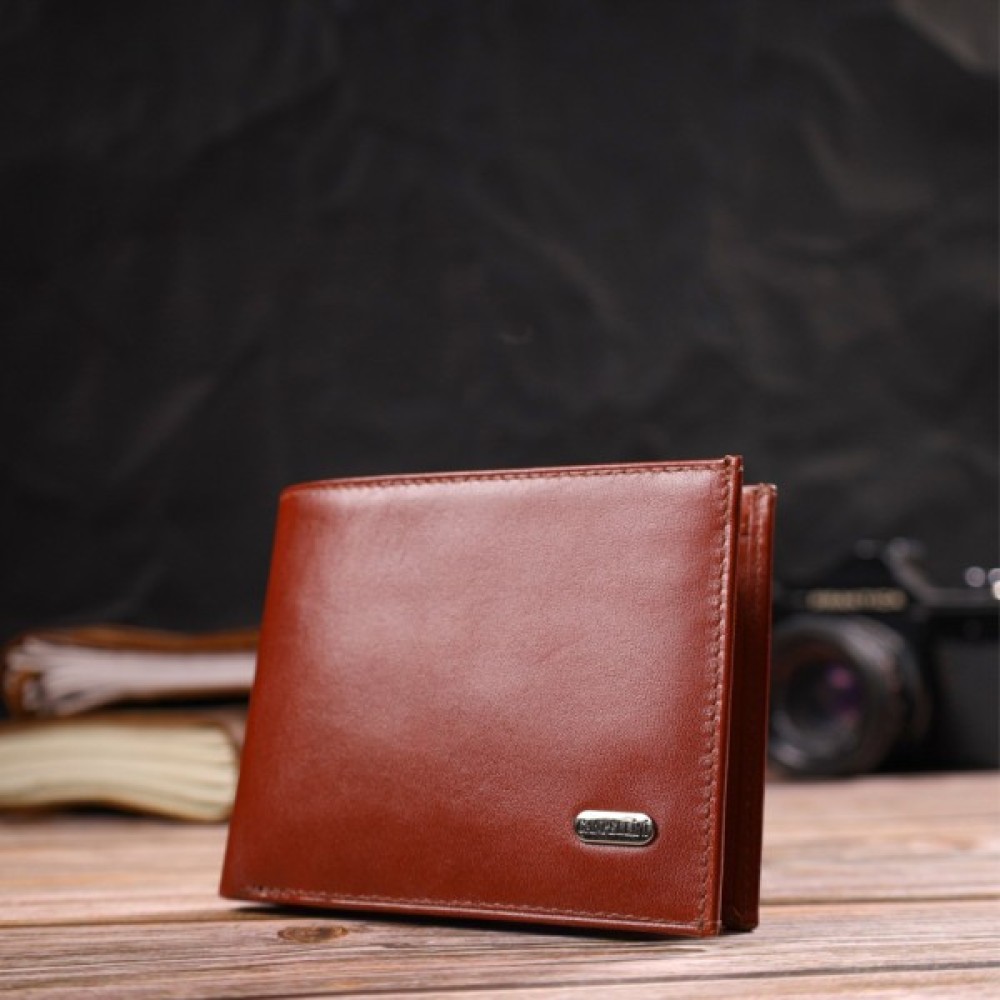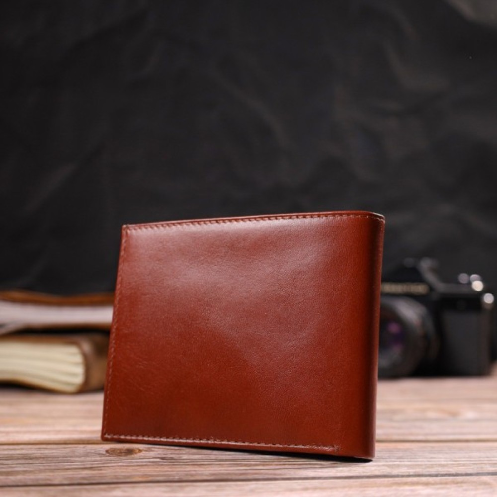 Цікавий чоловічий гаманець у красивому коричневому кольорі з натуральної гладкої шкіри.