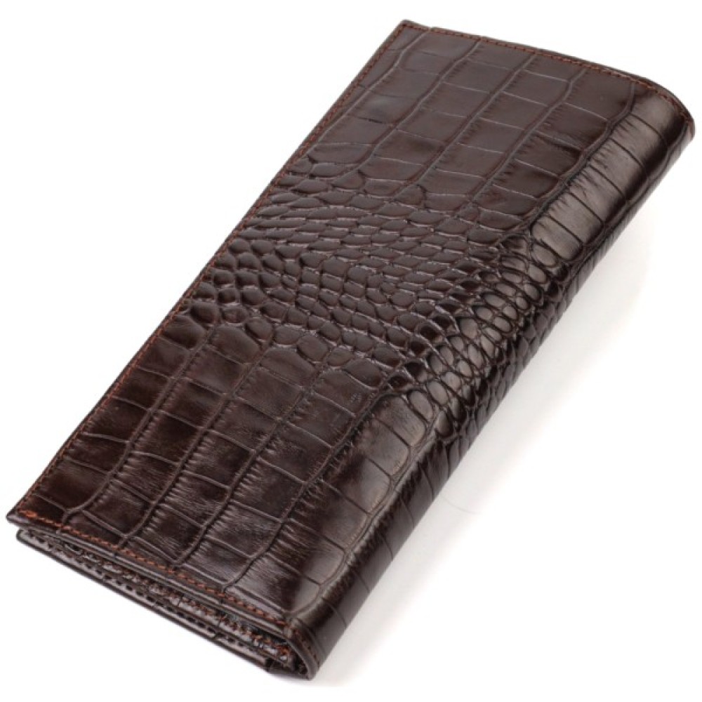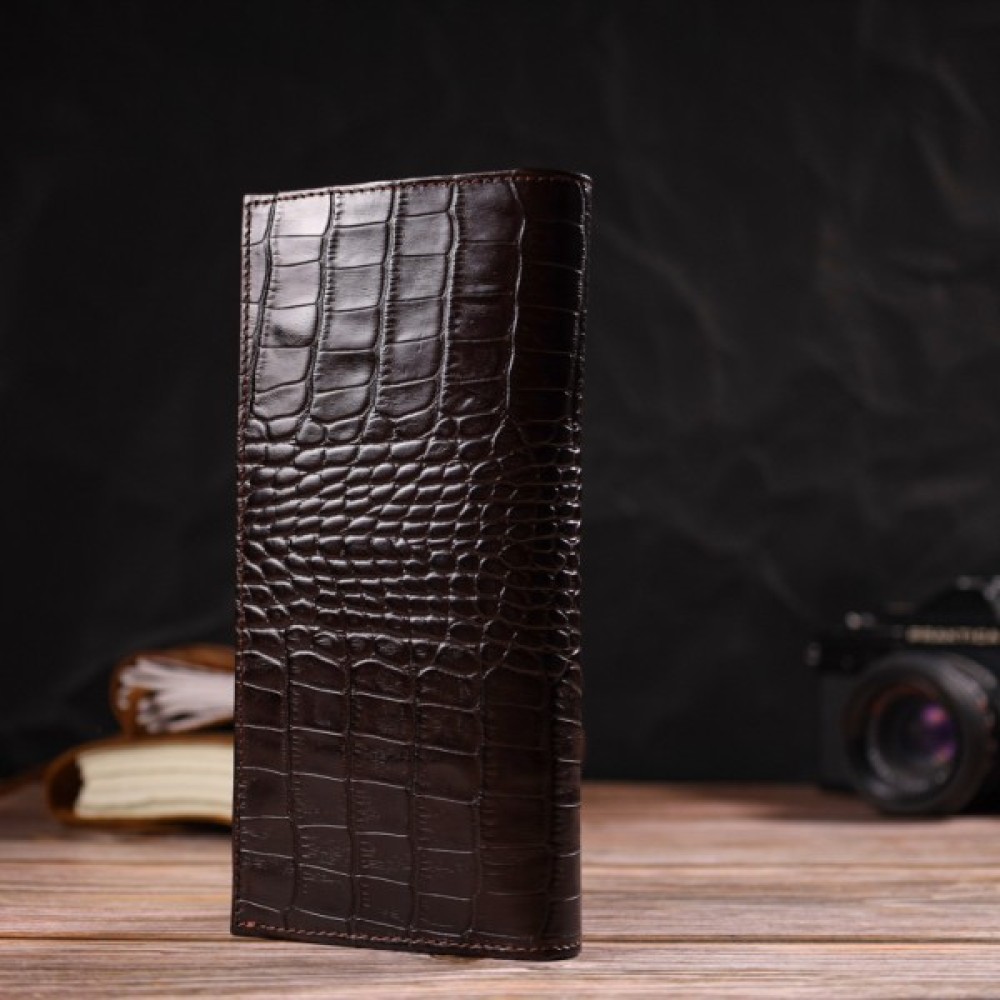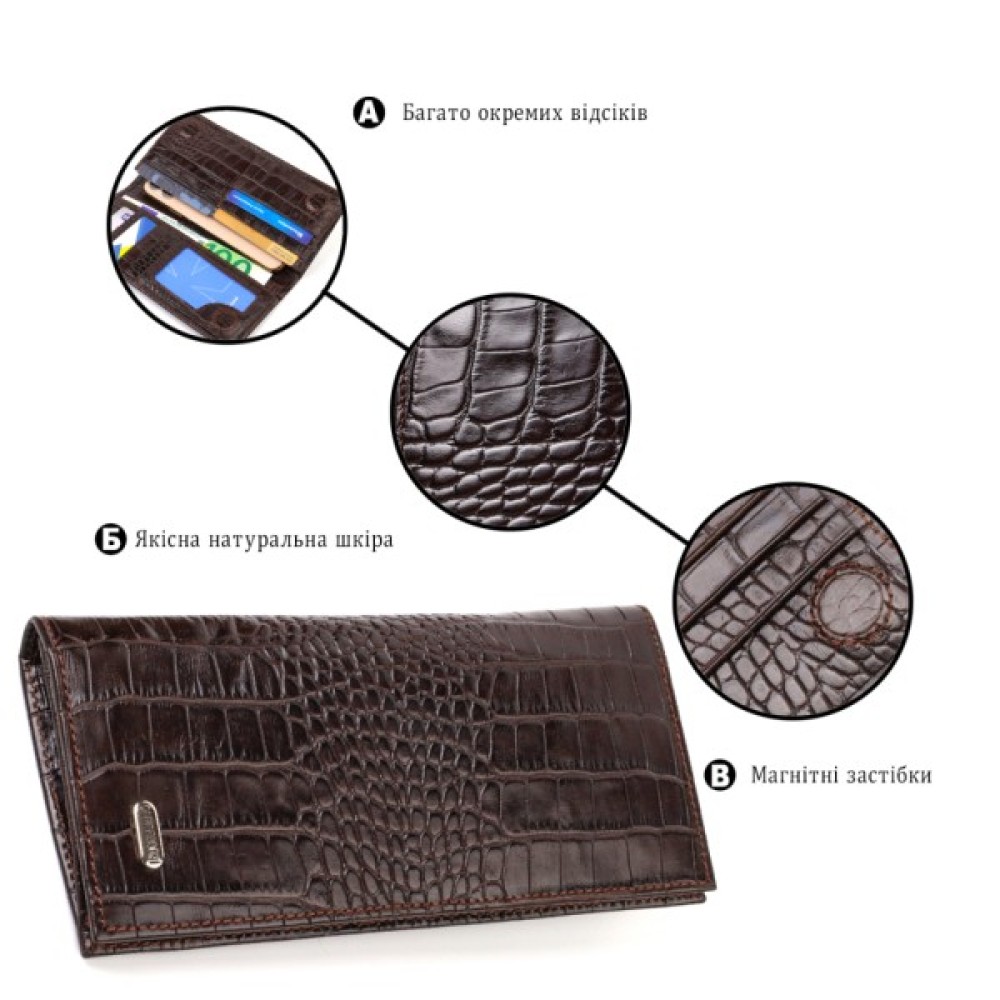 Представницький чоловічий гаманець із натуральної фактурної шкіри з тисненням під крокодила.