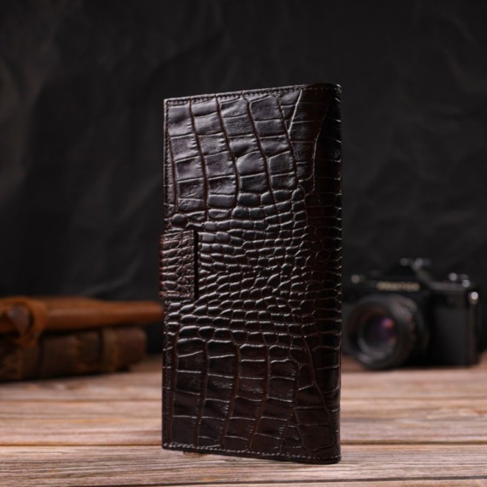 Зручний чоловічий гаманець із натуральної фактурної шкіри з тисненням під крокодила.