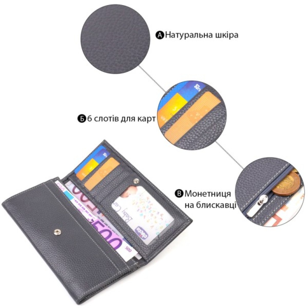 Чудовий жіночий гаманець горизонтального типу із натуральної зернистої шкіри.