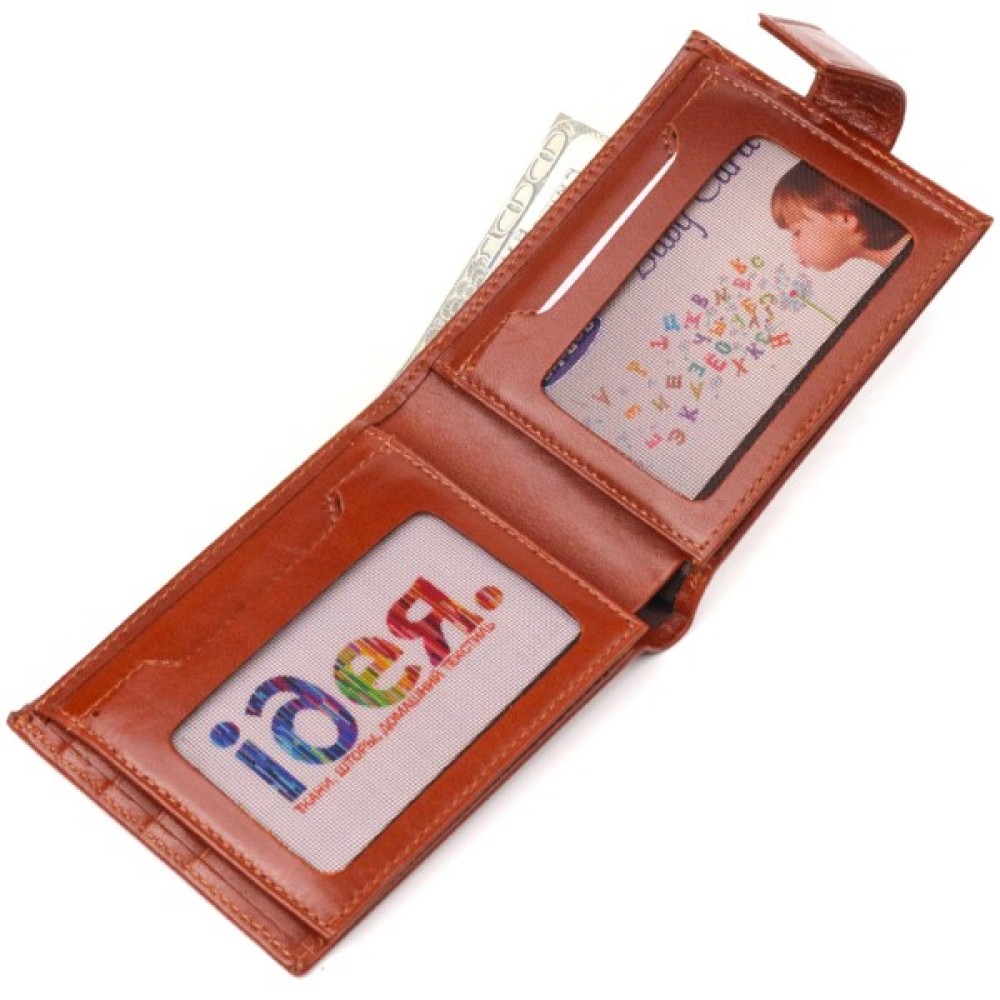 Портмоне закривається хлястиком на кнопку.