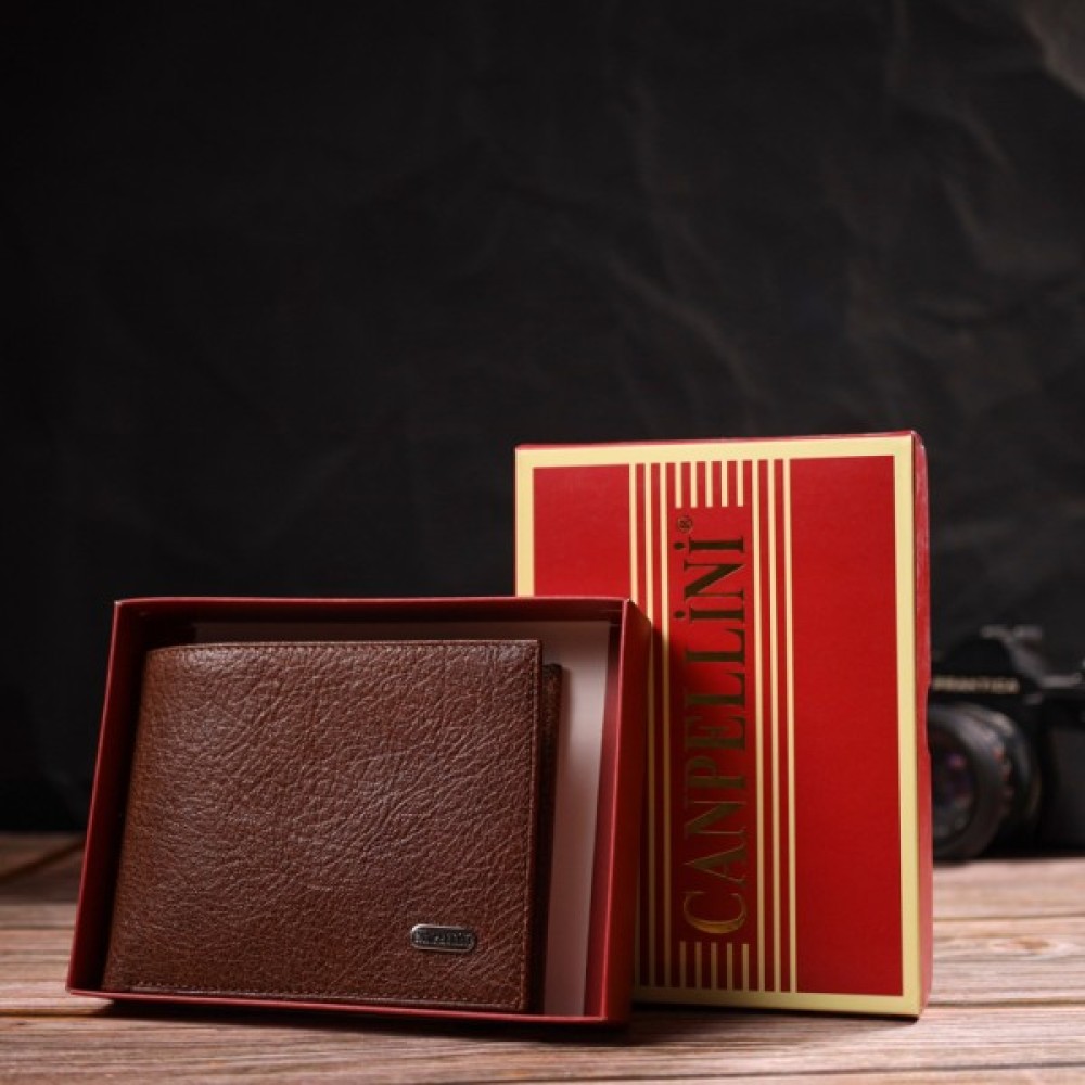 Зручний чоловічий гаманець у світло-коричневому кольорі з натуральної шкіри.