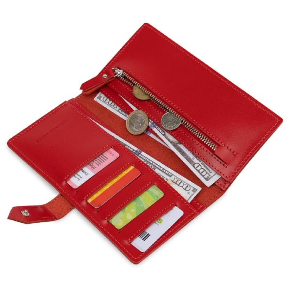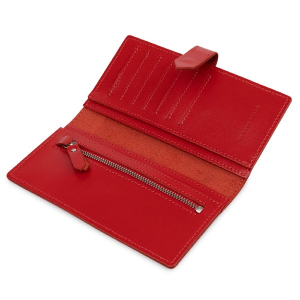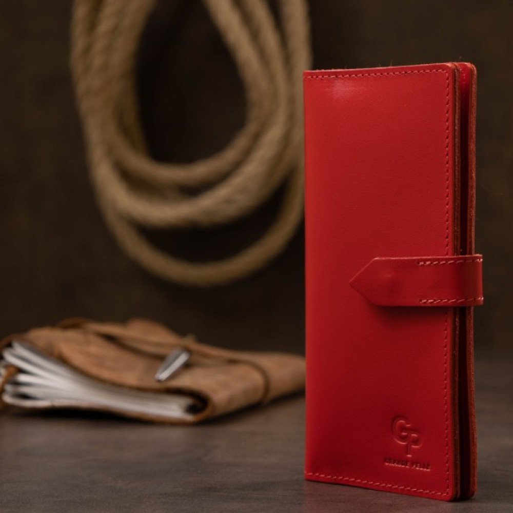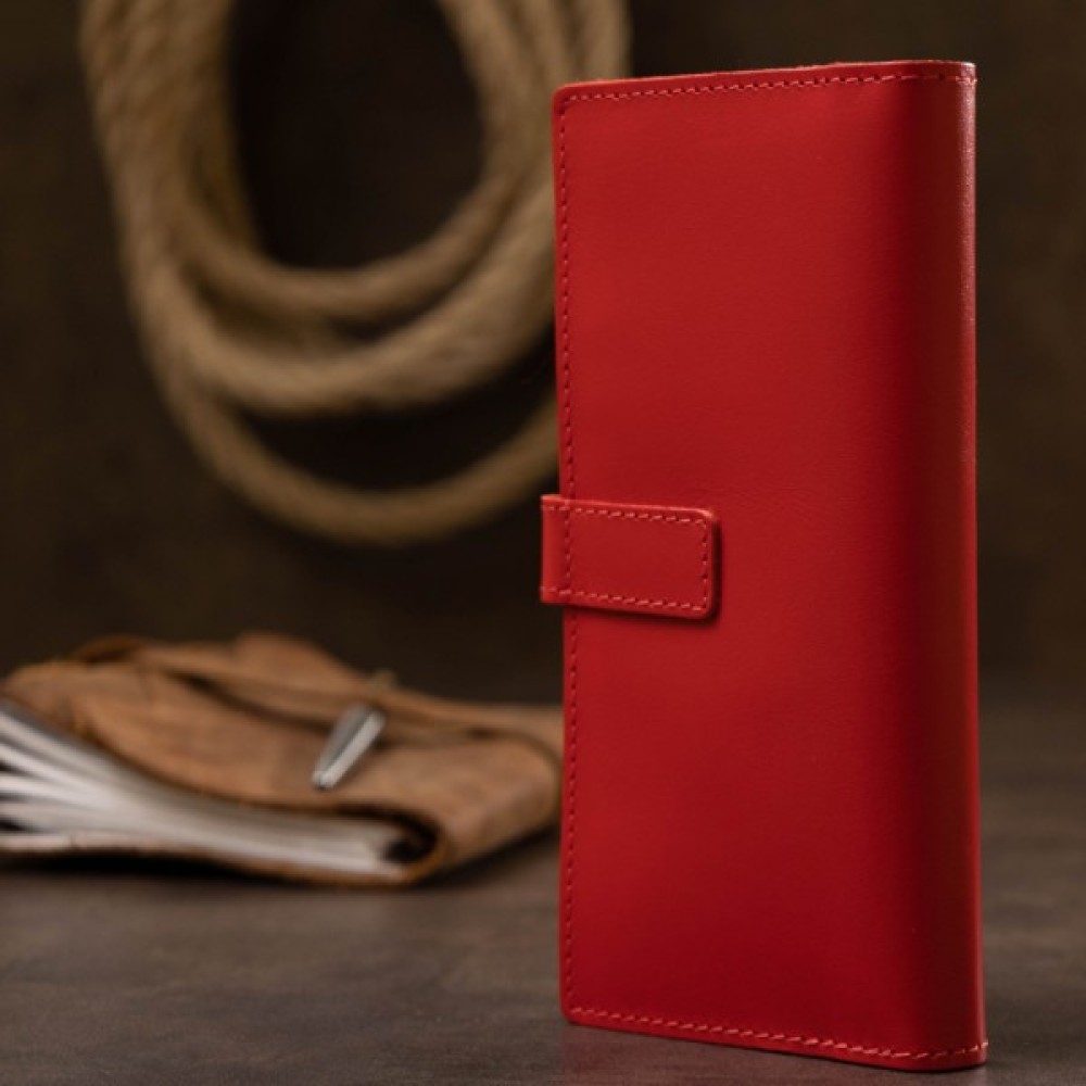 Матеріал: натуральна шкіра. Колір: бордовий. Розміри (ШхВхГ, см): 9х18х1 см. Країна виробник: Україна. Бренд: GRANDE PELLE. Опис: - закривається на кнопку; - всередині 4 відділення на всю довжину; - монетниця на блискавці; - 7 кишень для карток Красиве матове жіноче портмоне в бордовому кольорі з відтінком стиглої вишні. Виготовлений виріб з натуральної шкіри з високими показниками міцності. Закривається аксесуар на зручну практичну кнопку. Усередині розташувалися відділення на всю довжину для купюр, монетниця на блискавці і слоти для кредитних карт або візиток. Упаковано портмоне в фірмову картонну коробку.