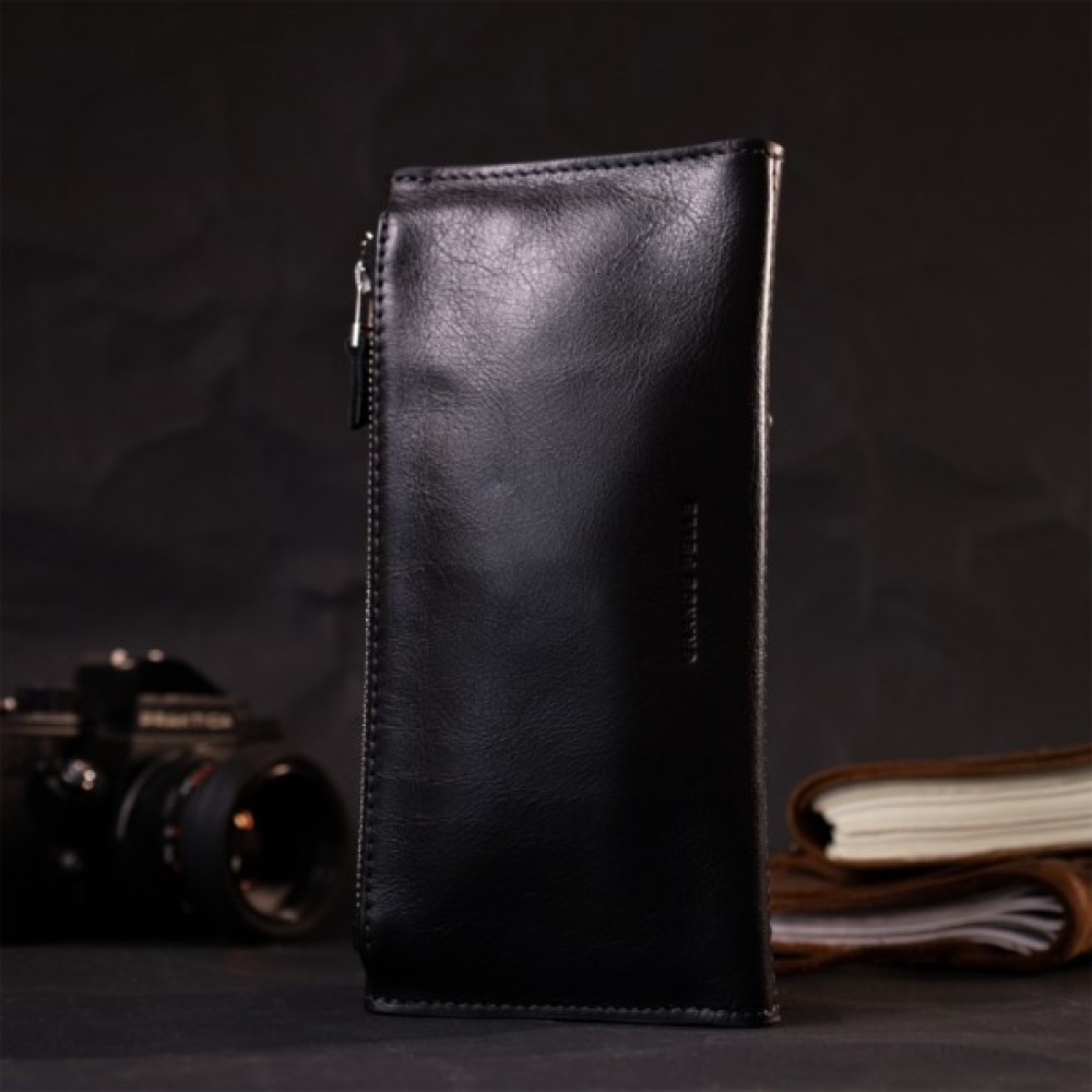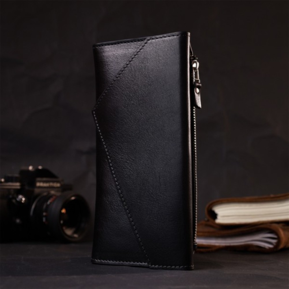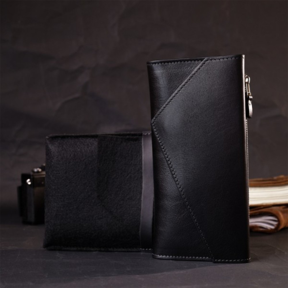 Модель: З монетницею зовні з натуральної шкіри Чорний