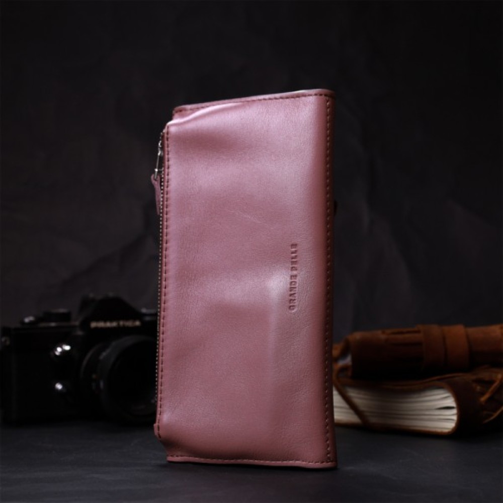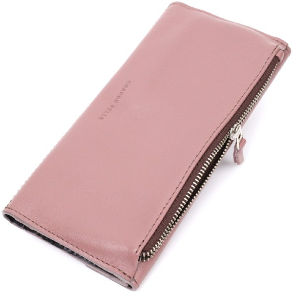 Гаманець Grande Pelle З монетницею зовні з натуральної шкіри Пудровий (11648)