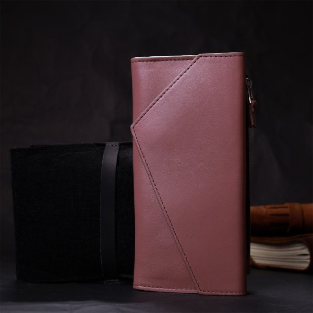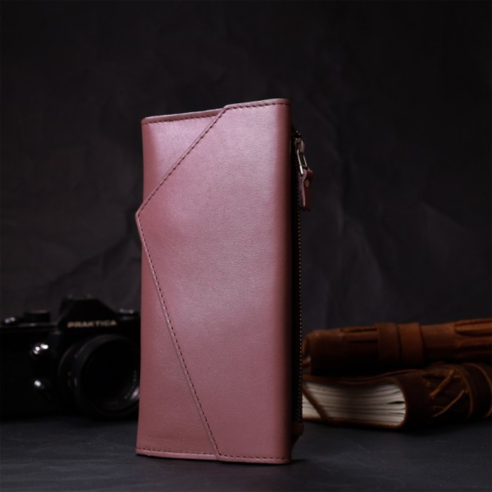 Місткий жіночий гаманець, який також можна використовувати у вигляді клатчу. Виконаний аксесуар у гарному кольорі, тому підійде під будь-який одяг. Матеріал виготовлення – натуральна високоякісна шкіра з високою стійкістю до зношування. Наповнення представлене у вигляді трьох відділень на всю довжину, маленької кишеньки для дрібниць, що закривається на магніт, одинадцяти слотів для карток та монетниці зовні. Запакований аксесуар у фірмовий чохол.