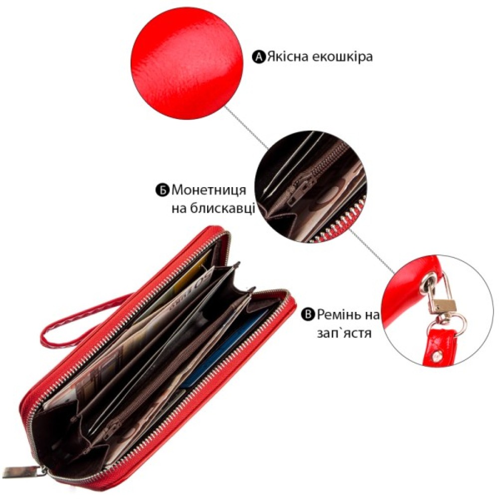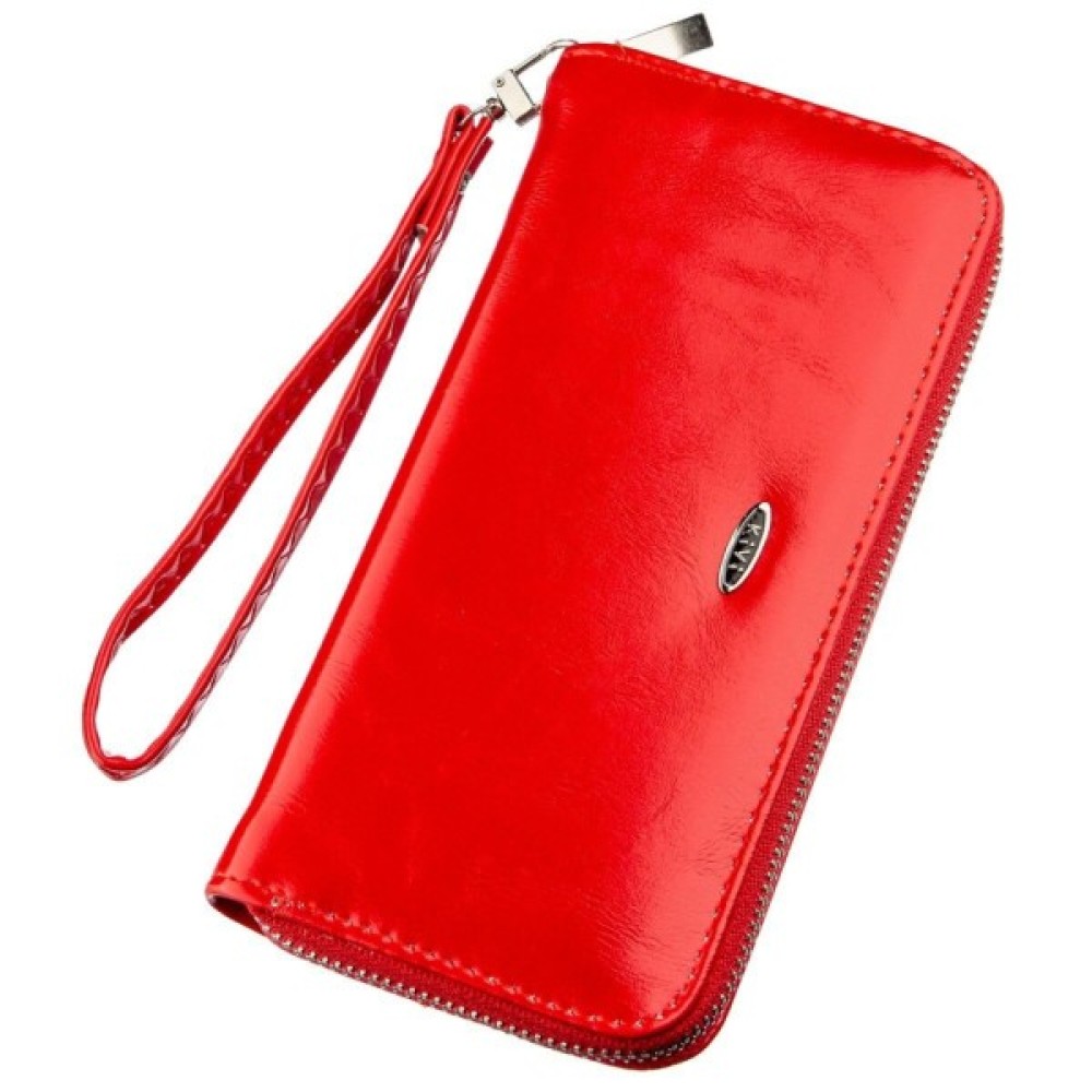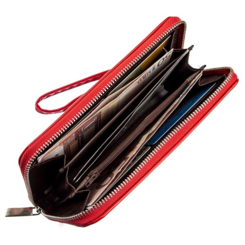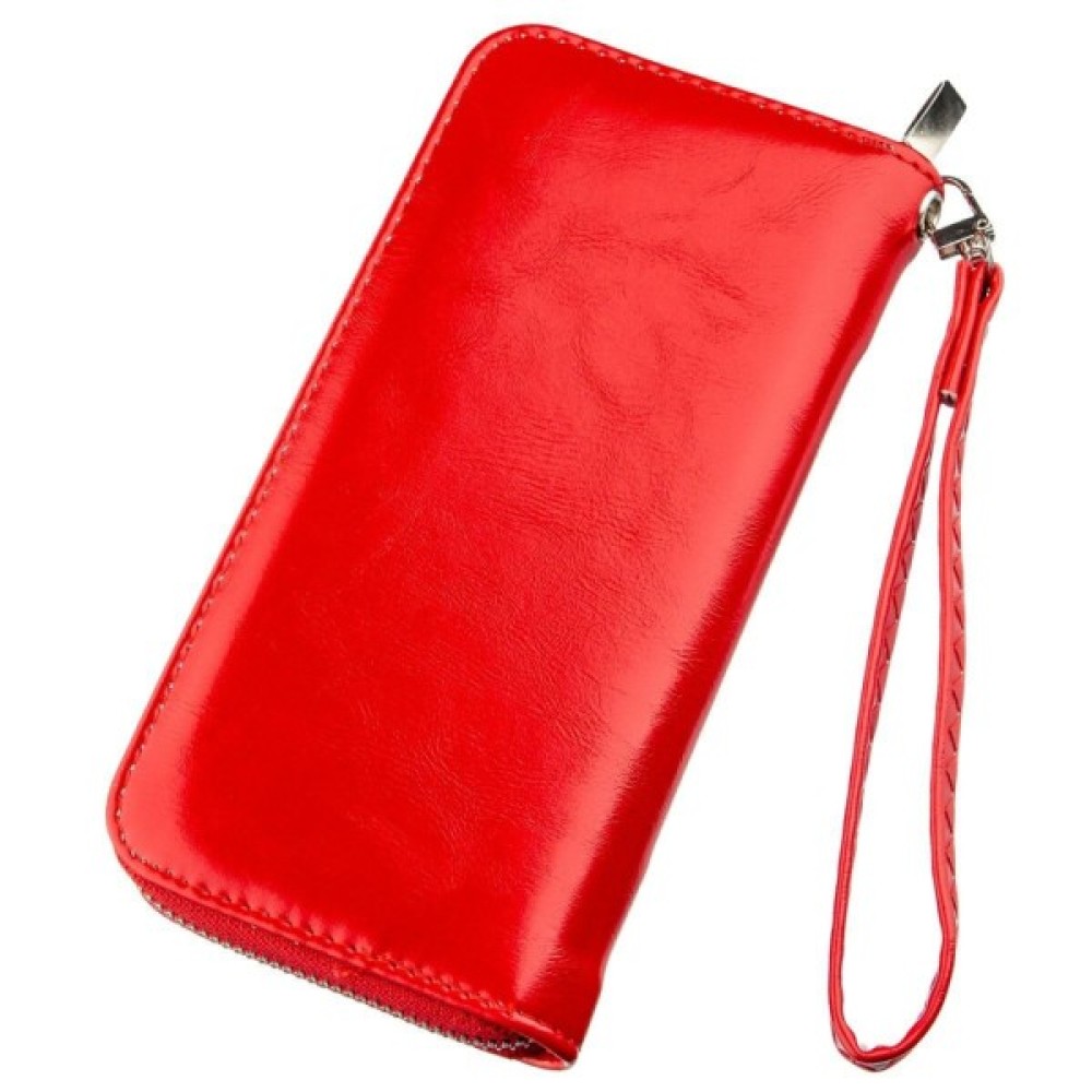 Тонкий гаманець на одну блискавку яскраво-червоного кольору. Аксесуар має просторі відділення для купюр, відділення для карток.