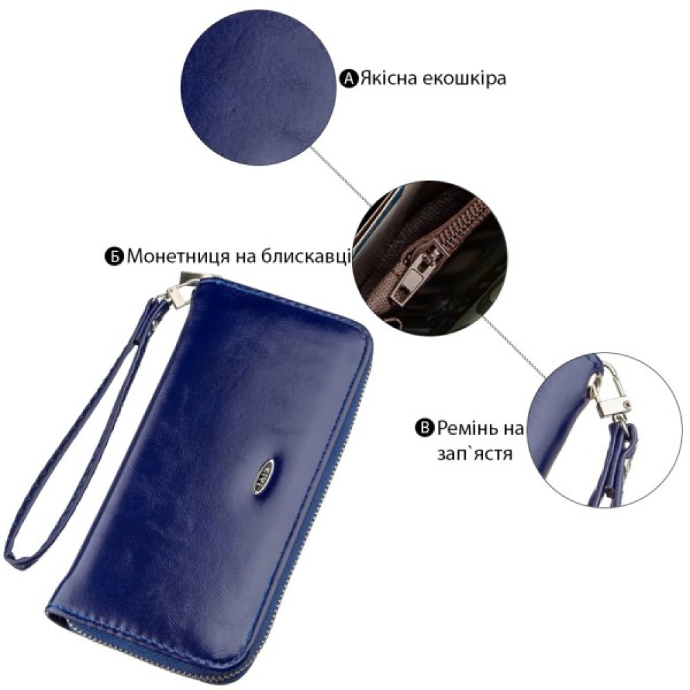 Дана модель — це вибір класиків. Витриманий дизайн і синій колір у поєднанні з доступною вартістю роблять гаманець більш привабливим. Аксесуар підійде під будь-який стиль і образ. Ви можете носити даний гаманець як клатч.