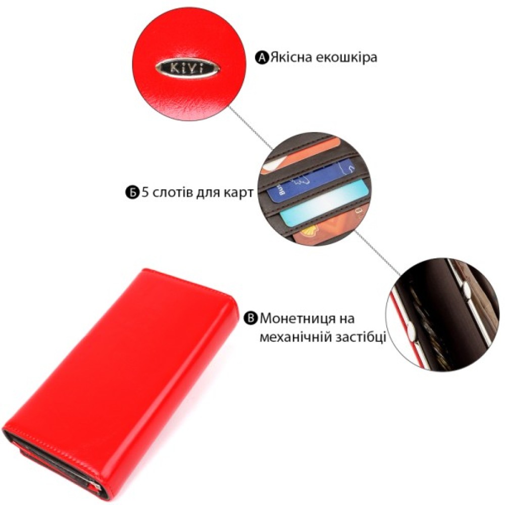 Гаманець, Kivi, З, гладкої, екошкіри, Червоний, 19075