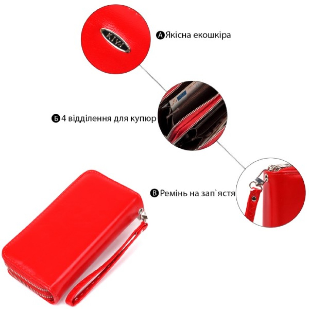 Класичний і доступний жіночий гаманець. Така модель сподобається тим дівчатам, які носять з собою багато карток і не хочуть викладати їх з гаманця. Місткий обсяг гаманця не принесе вам незручності у використанні. Малиновий колір і дизайн поєднуватимуться з будь-яким одягом.