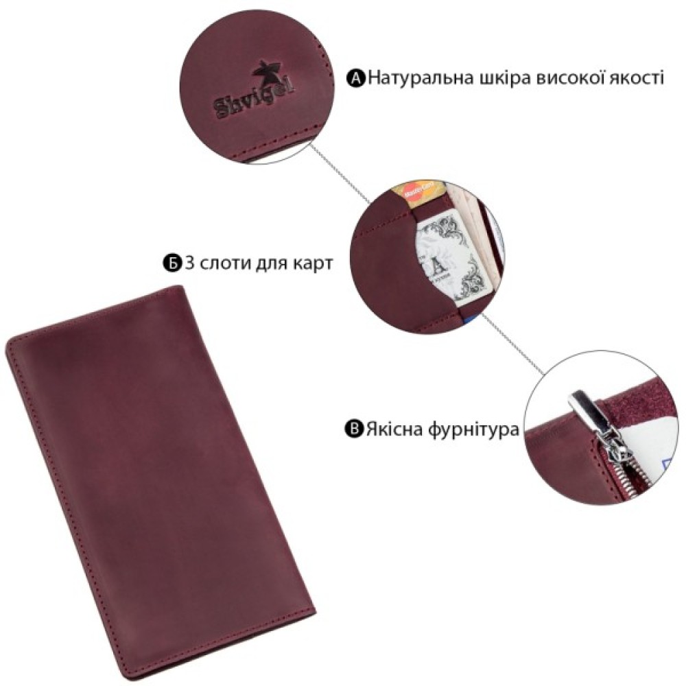 Гаманець, Shvigel, Шкіряний, Бордовий, 16196