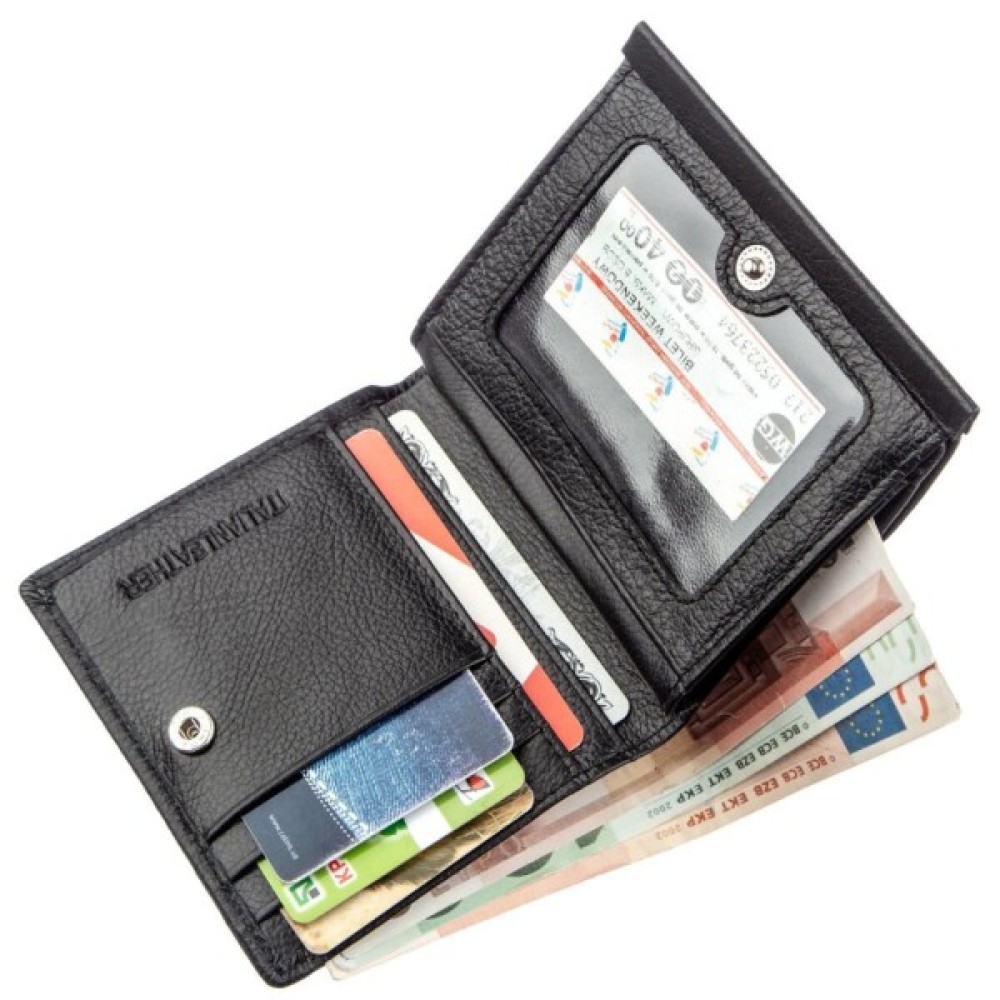 Невеликий, практичний жіночий гаманець з натуральної шкіри високої якості. Має універсальний чорний колір з матовим відтінком.