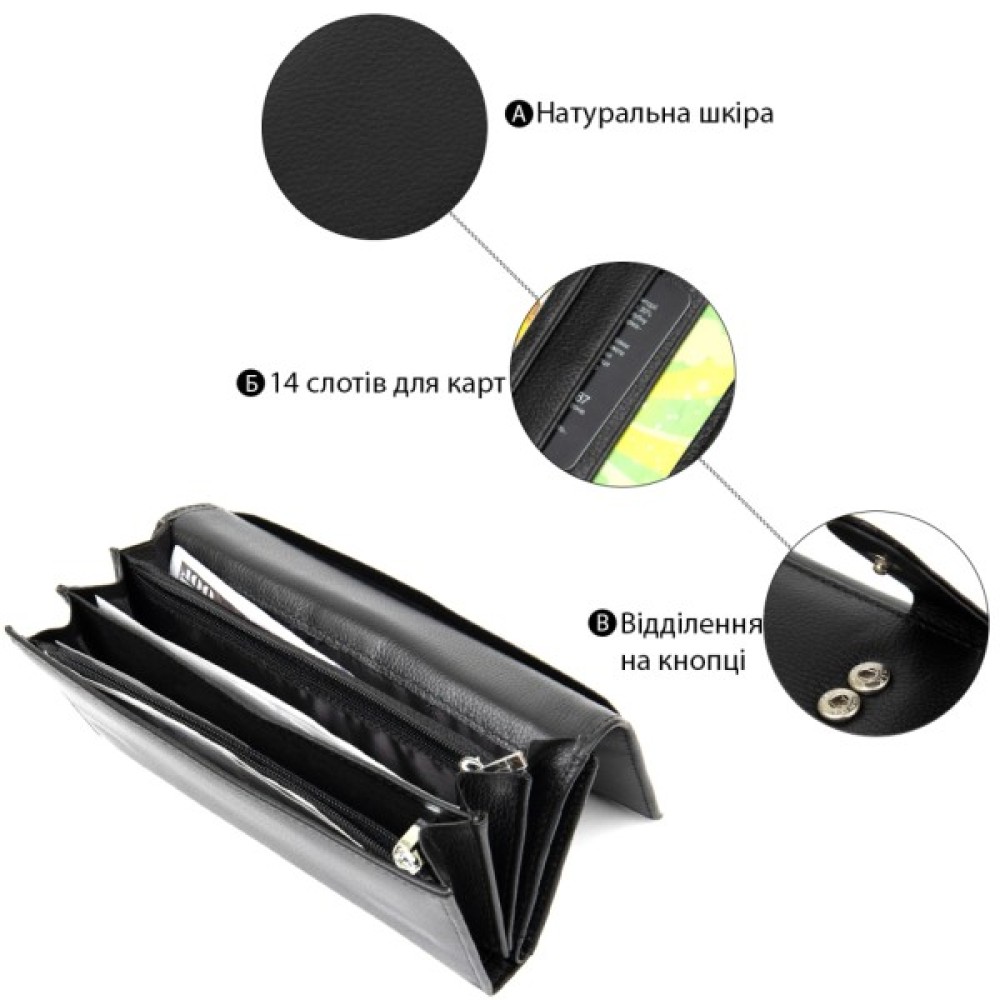 Виготовлений із високоякісної зернистої шкіри з матовою фактурою, місткі відділення дозволяють зручно зберігати купюри, монети та картки.