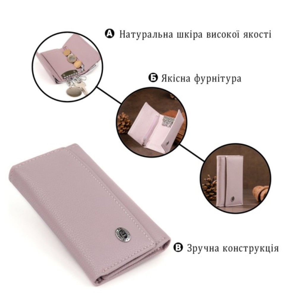 Стильний гаманець-ключниця для жінок зі шкіри високої якості яскравого лілового кольору.