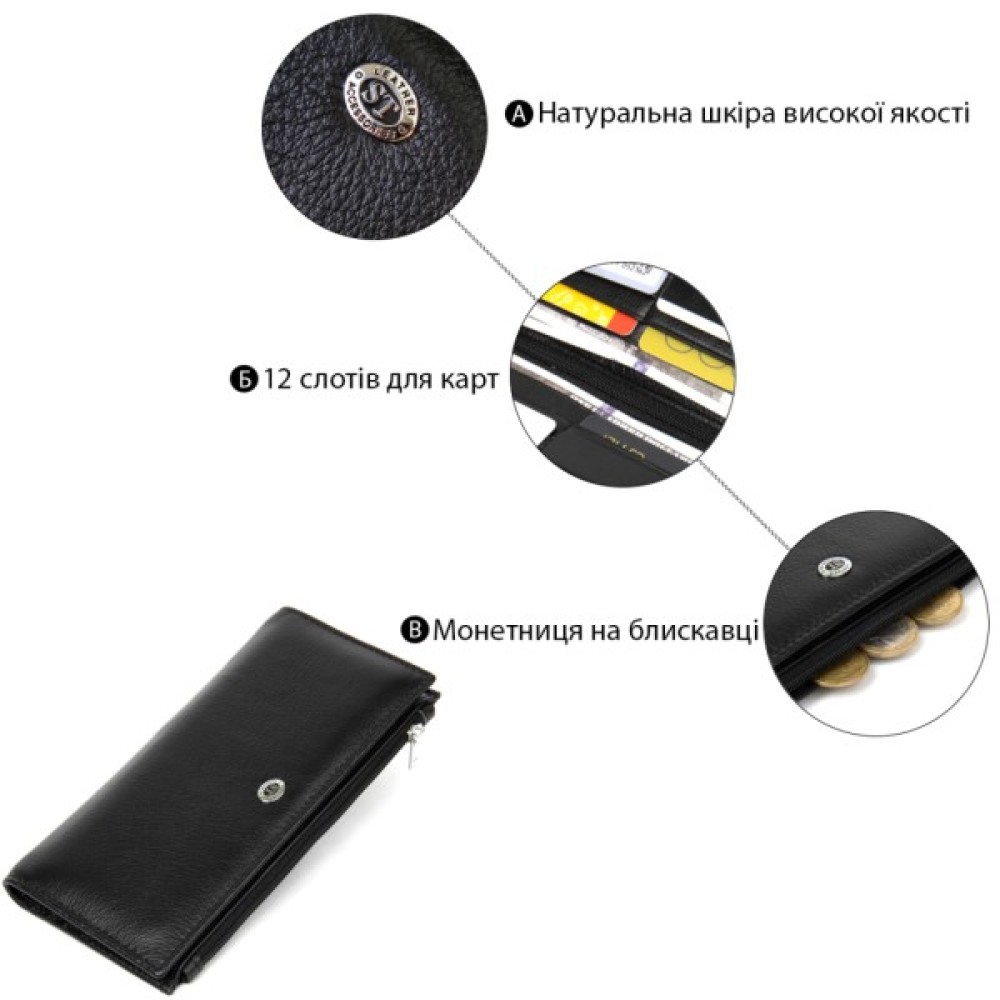 Гаманець, ST, Leather, Шкіряний, Чорний, 19378
