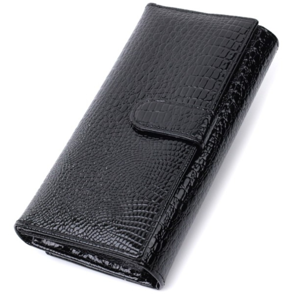 Стильний гаманець для жінок із високоякісної лакованої шкіри з тисненням під рептилію.