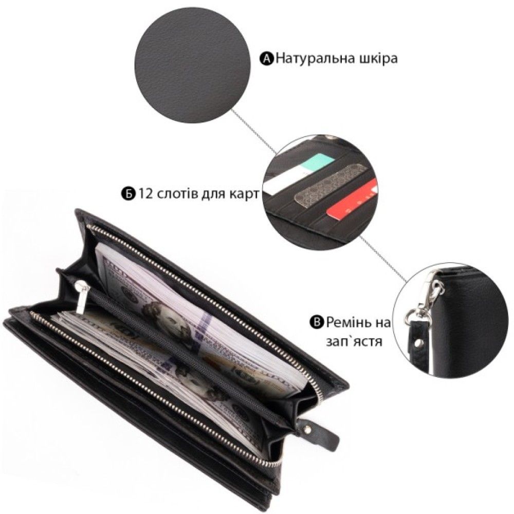Гаманець, ST, Leather, Шкіряний, жіночий, Чорний, 19274
